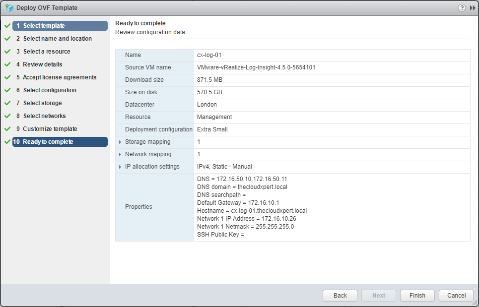 The deployment of vRealize Log Insight can be completed in a few easy steps: