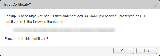 - Type the Lookup Service Host as the FQDN of the VMware Platform Services Controller (if separate from the VMware vCenter Server Appliance). For vCenter 6.x leave the default Lookup Service Port (443), type