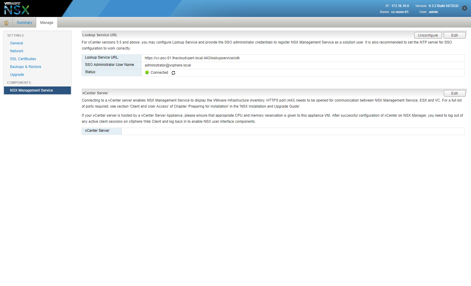 - Completing VMware NSX Manager Initial Configuration. ( HOWTO )