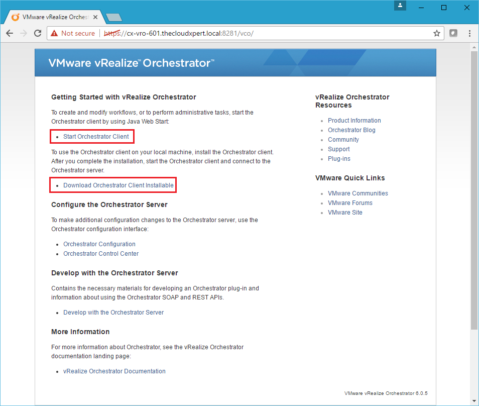 When using the External vRealize Orchestrator Appliance, the client can be obtained from https://vro-appliance.fqdn:8281
