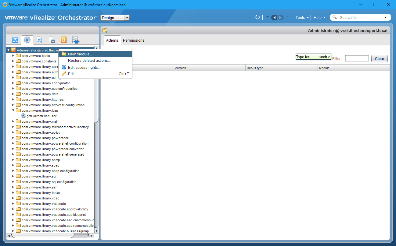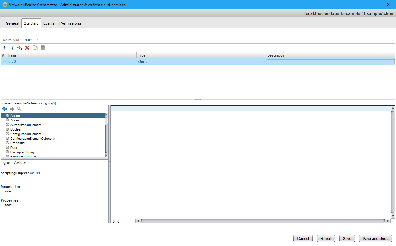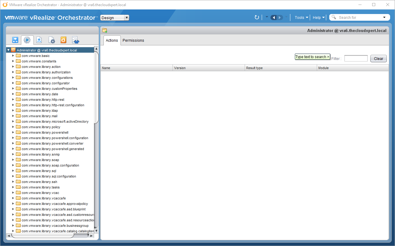 We can think of Actions as “modules” within vRealize Orchestrator. They are bits of JavaScript code that can be used by (amongst other things) Workflows. They differ from Scriptable Tasks because Actions can be shared between workflows.