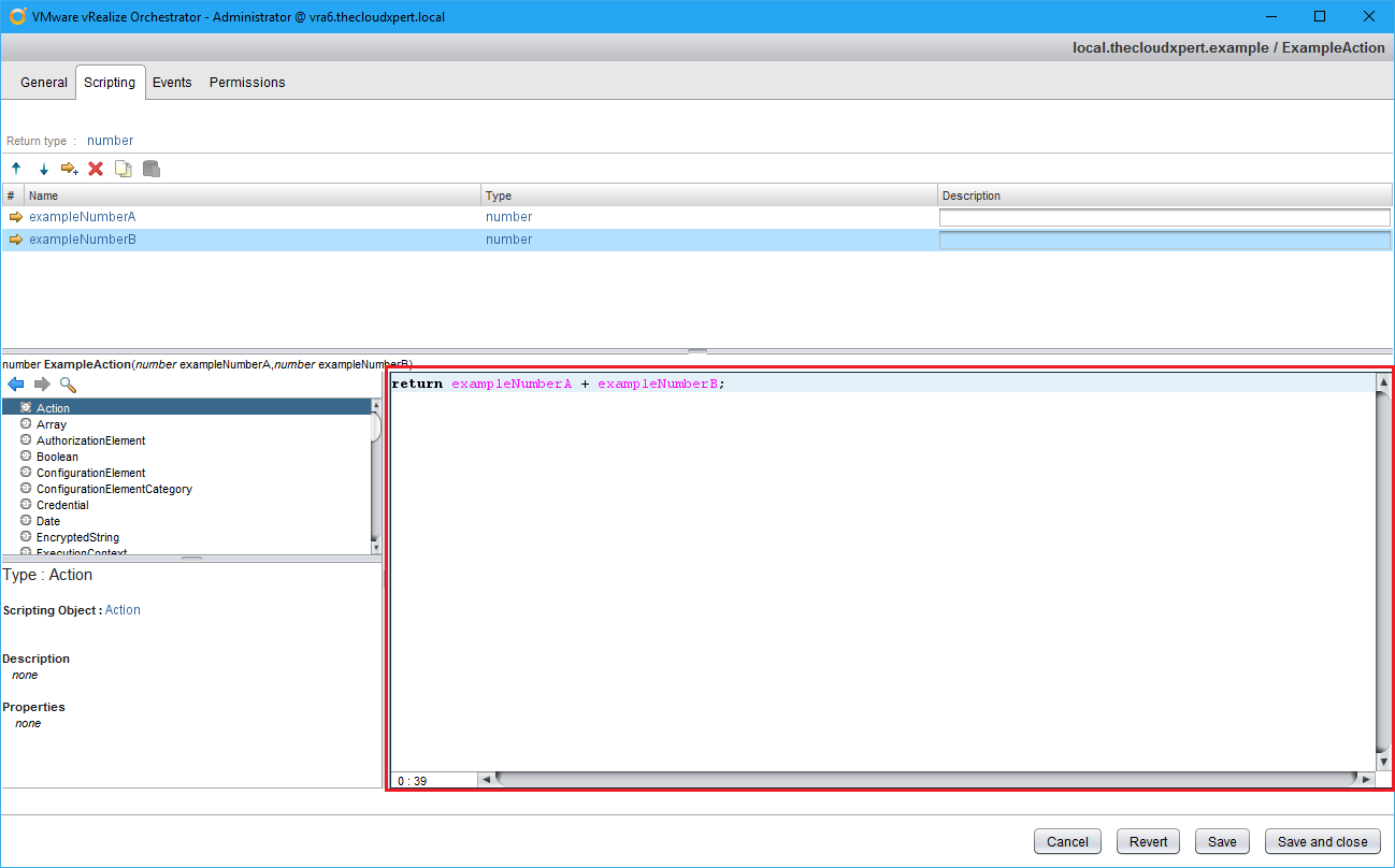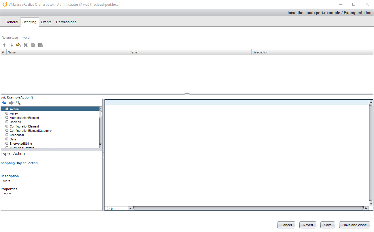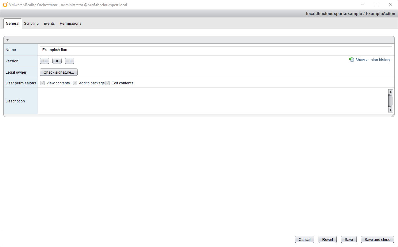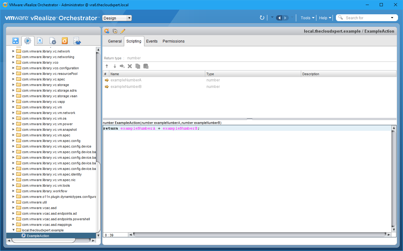 We can think of Actions as “modules” within vRealize Orchestrator. They are bits of JavaScript code that can be used by (amongst other things) Workflows. They differ from Scriptable Tasks because Actions can be shared between workflows.