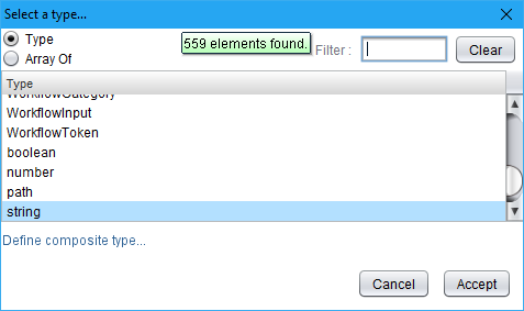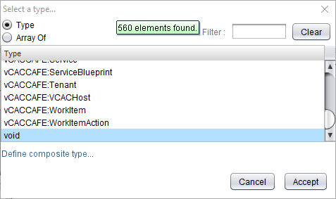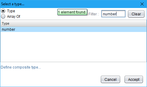 - Choose the required object type (optionally choose the Array Of option) and click Accept.