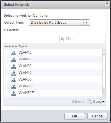 - Choose either a Distributed Port Group or a Network (Standard Switch) from the Object Type dropdown, select the appropriate (Management) network and click OK.