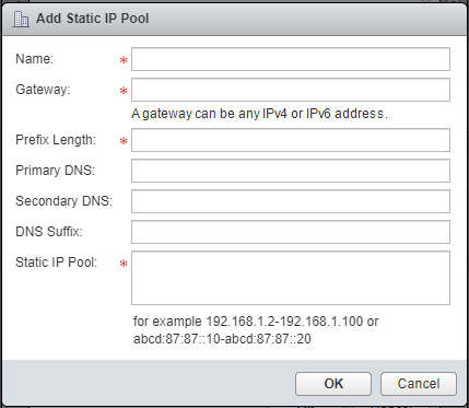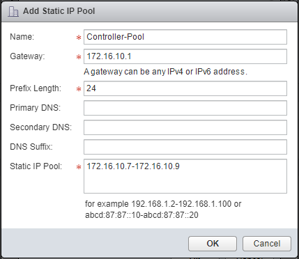 - Type the Name of the new Pool, the Gateway IP Address, the Prefix Length (in bits, i.e.
