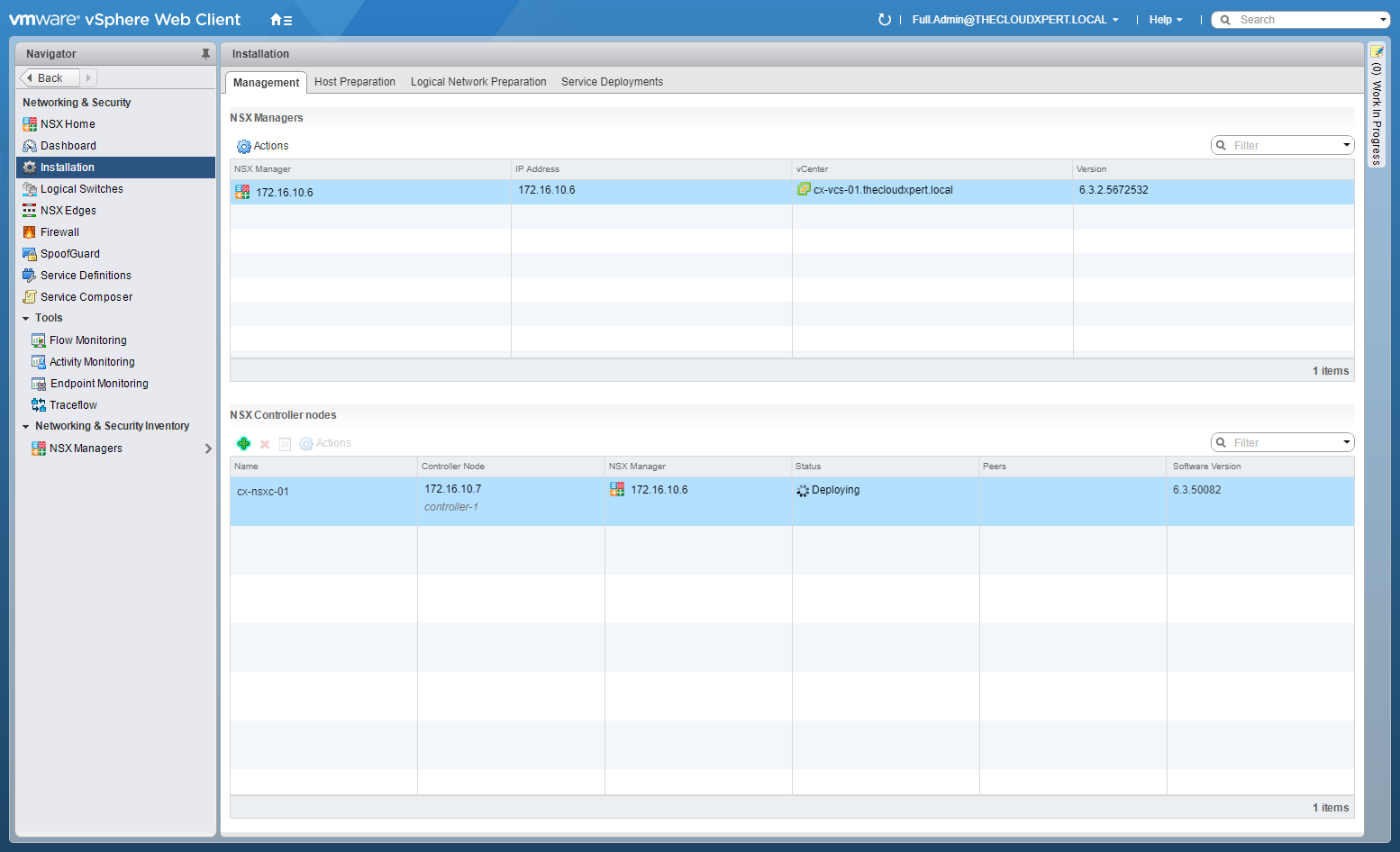 Deploying the First NSX Controller