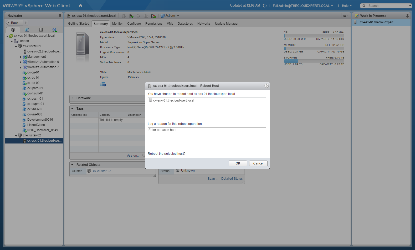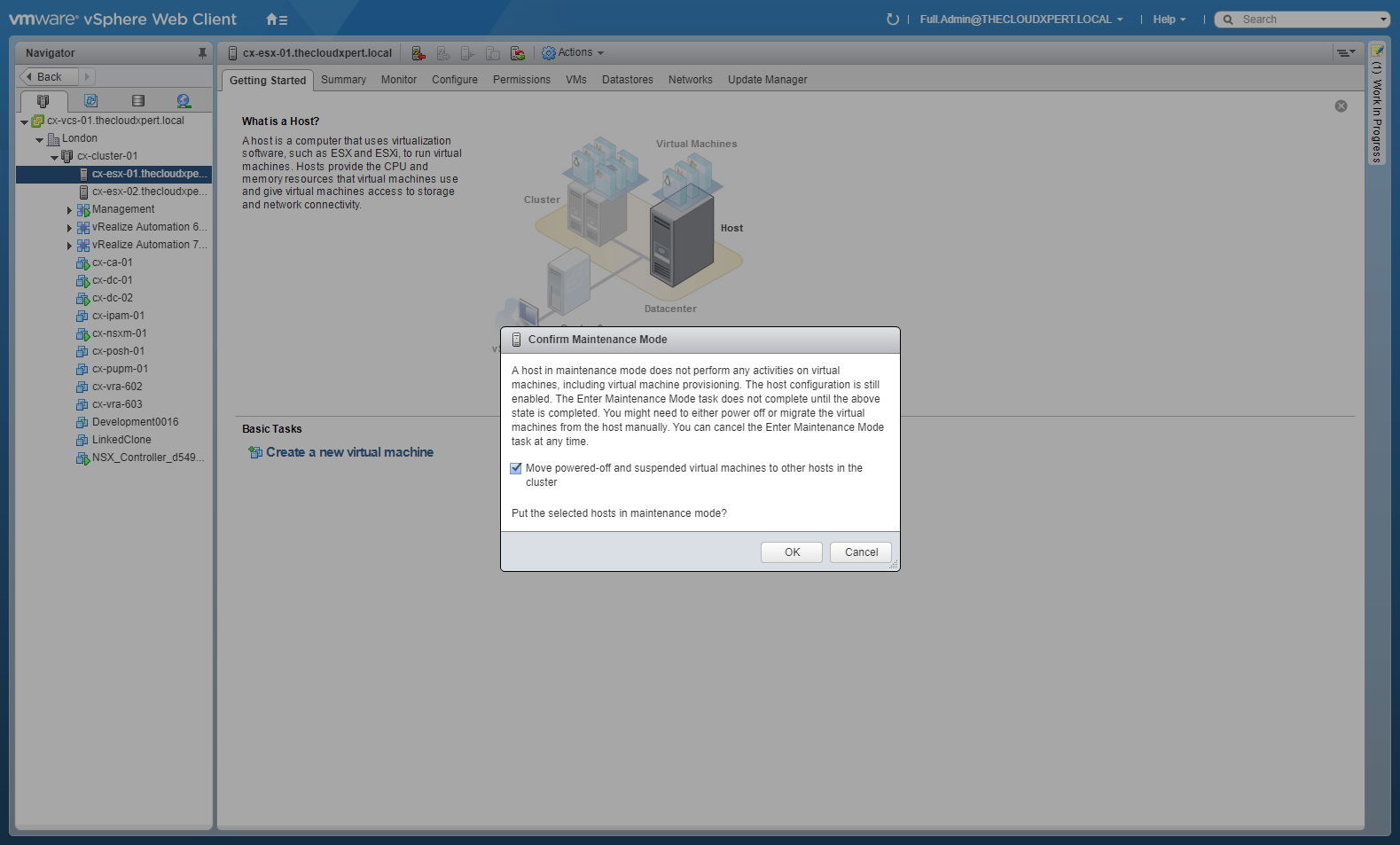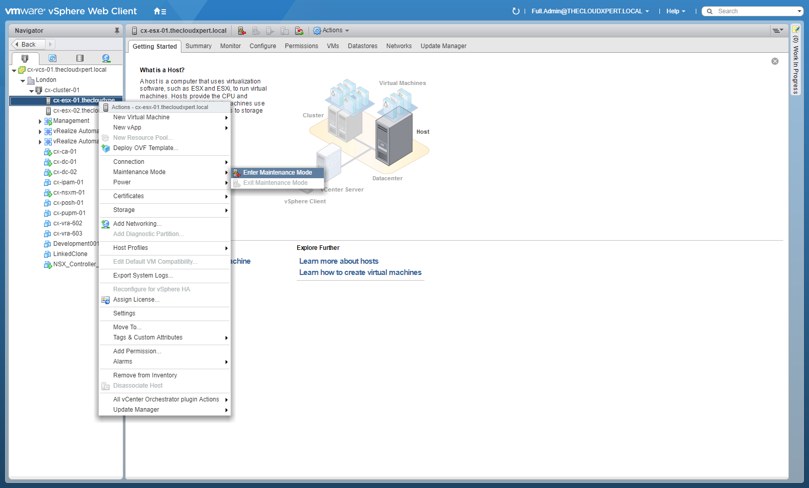 - Right-click on the host and select Maintenance Mode and Enter Maintenance Mode.