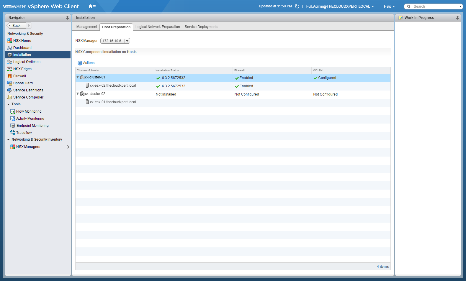 As you will see we now have two clusters, one is NSX enabled and one isn’t.