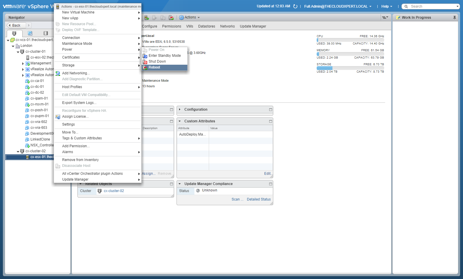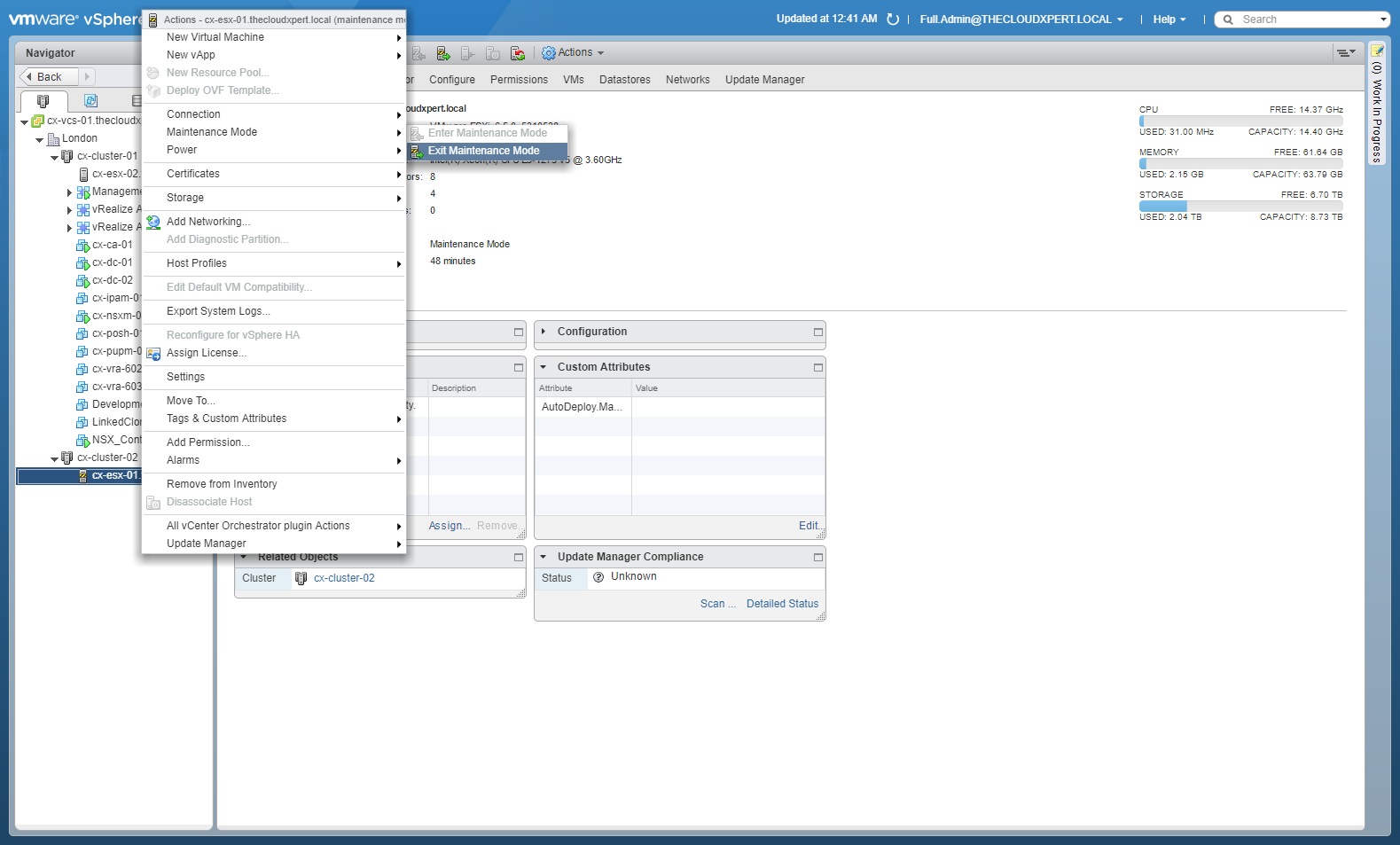 - (optional) Right-Click on the target host and select Maintenance Mode > Exit Maintenance Mode.