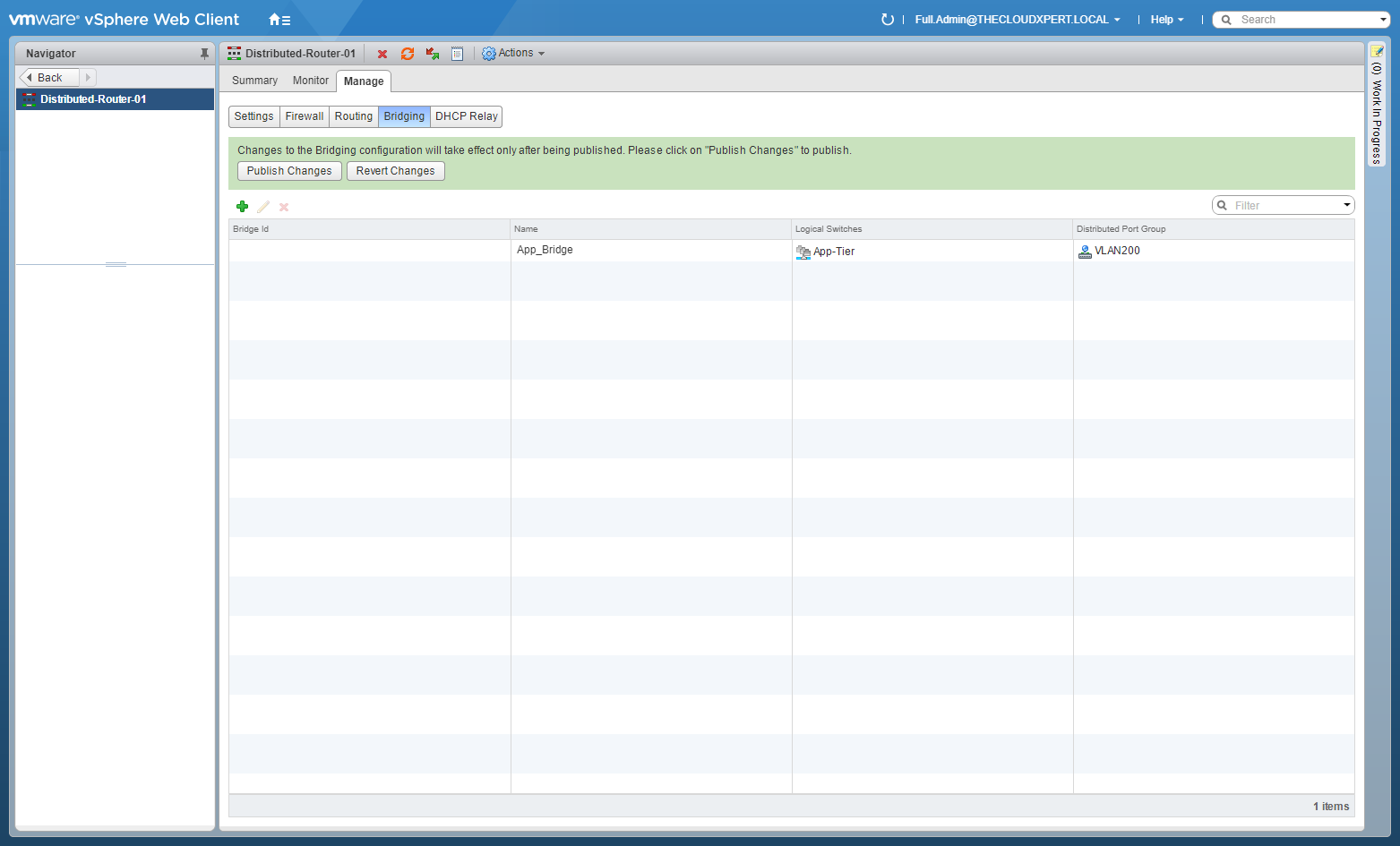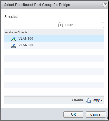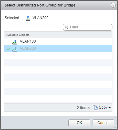 - Connect Layer 2 Bridging to the appropriate distributed virtual port group