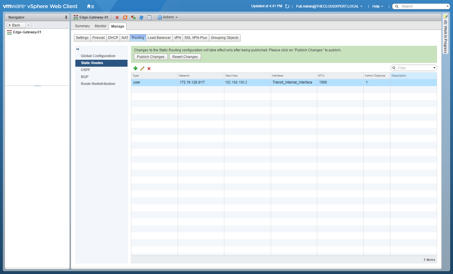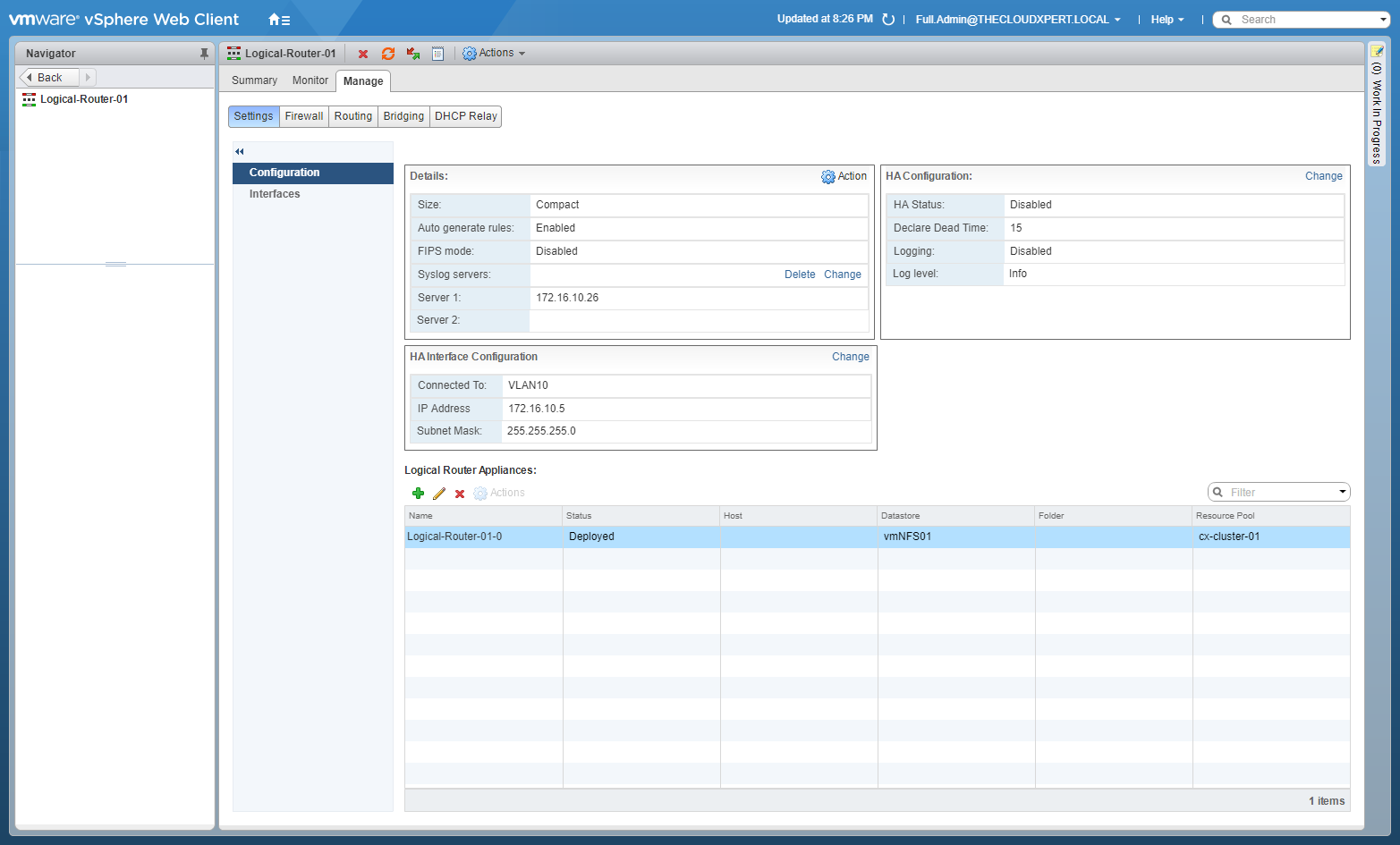 - Double-Click on the target NSX Edge.