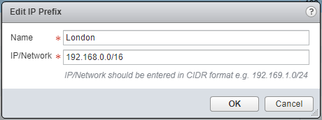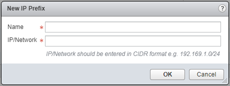 - Enter a Name for the IP Prefix and then a IP/Network in CIDR format.