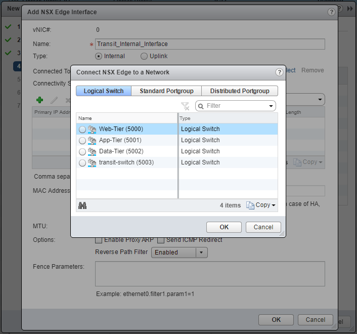 - Select the target Network (Logical Switch / Standard Portgroup / Distributed Portgroup) and click OK.