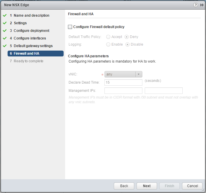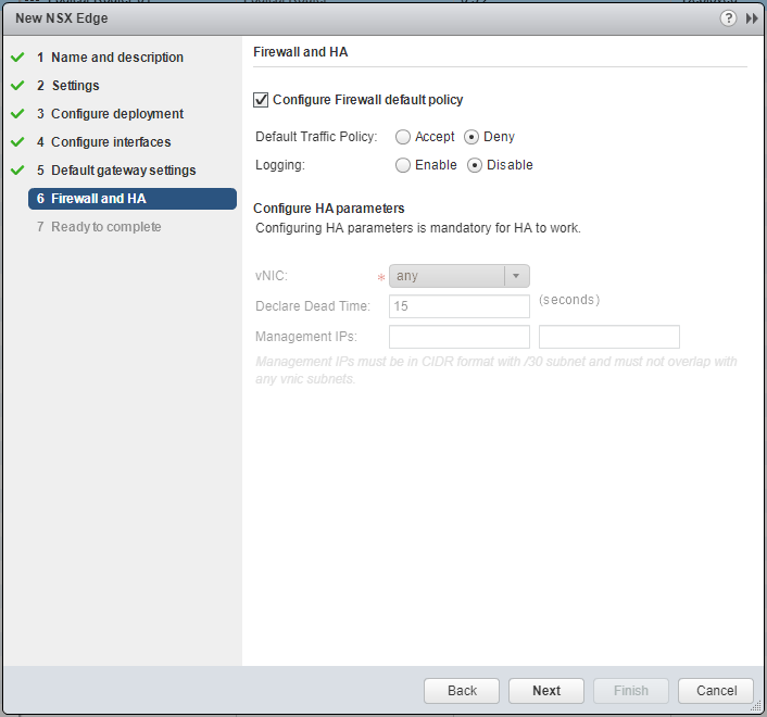 If HA has been specified, select the vNIC from the dropdown and enter the Management IPs.