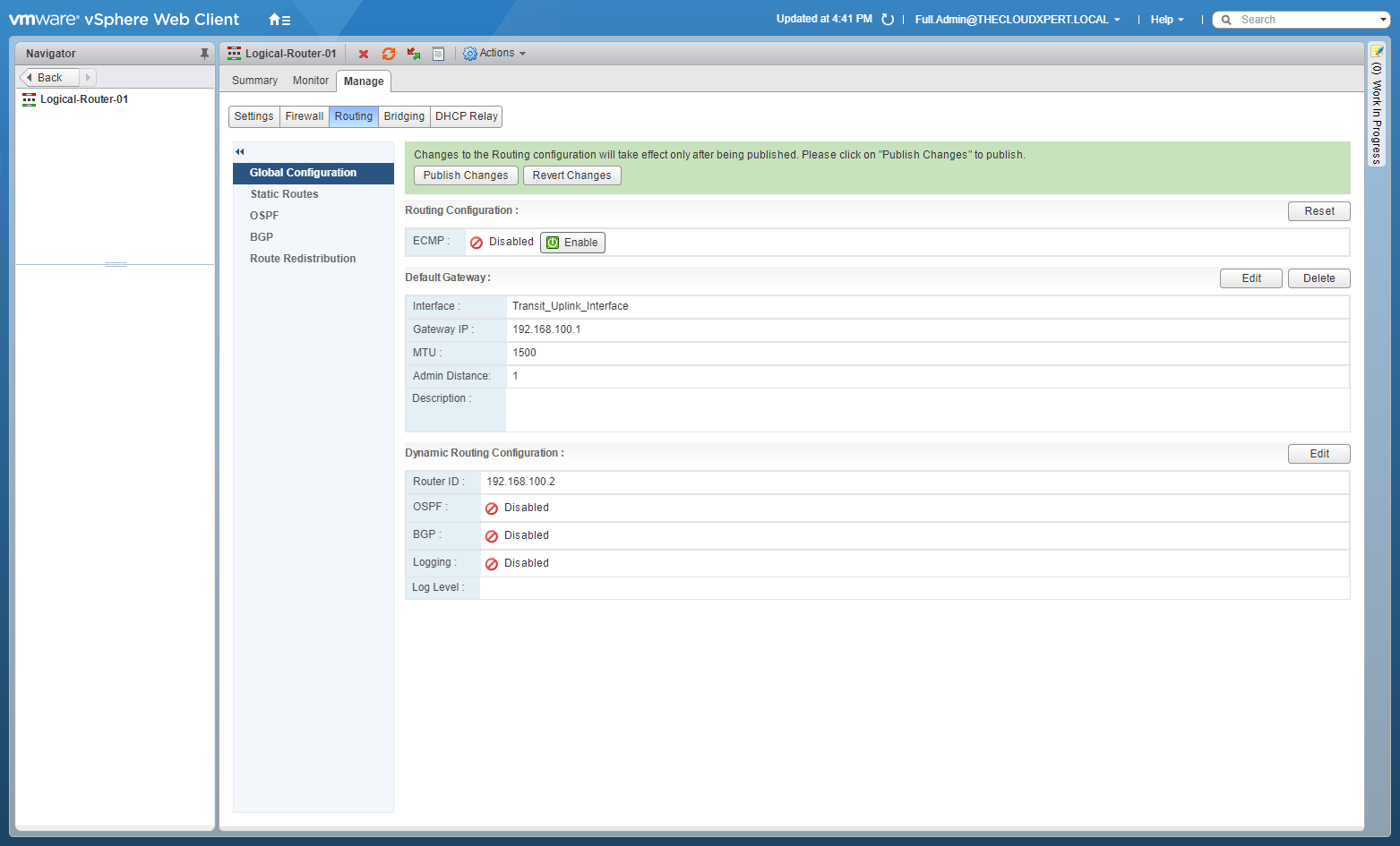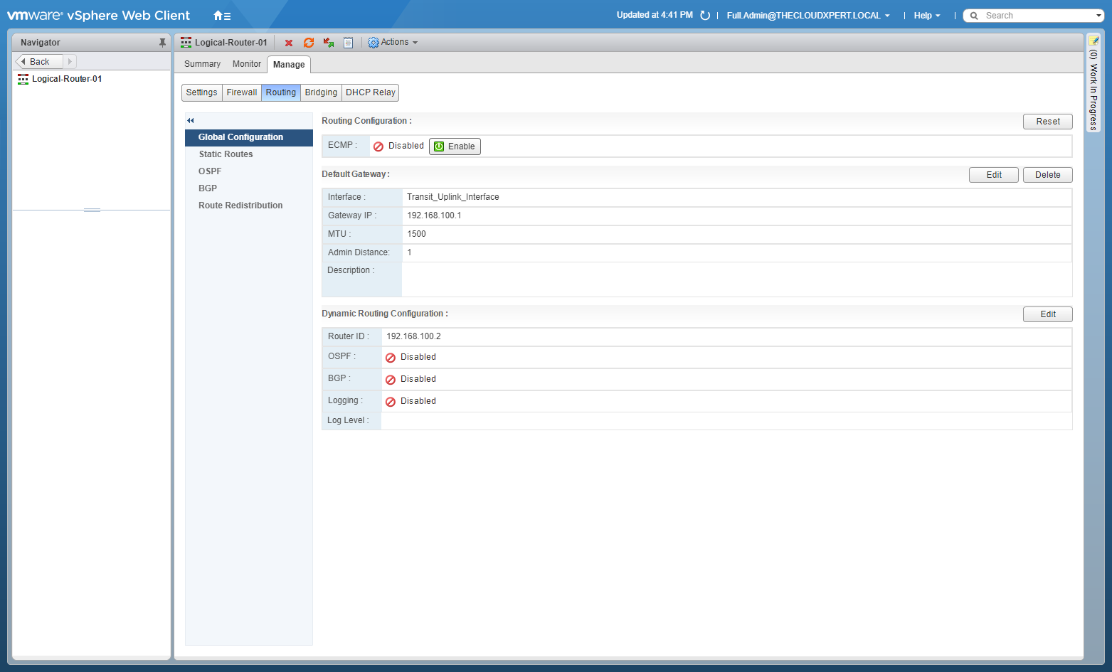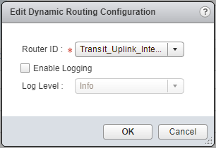 When configuring Dynamic Routing within VMware NSX it is important to configure each NSX Edge, either Edge Service Gateway (ESG) or Distributed Logical Router (DLR), with a Router ID.