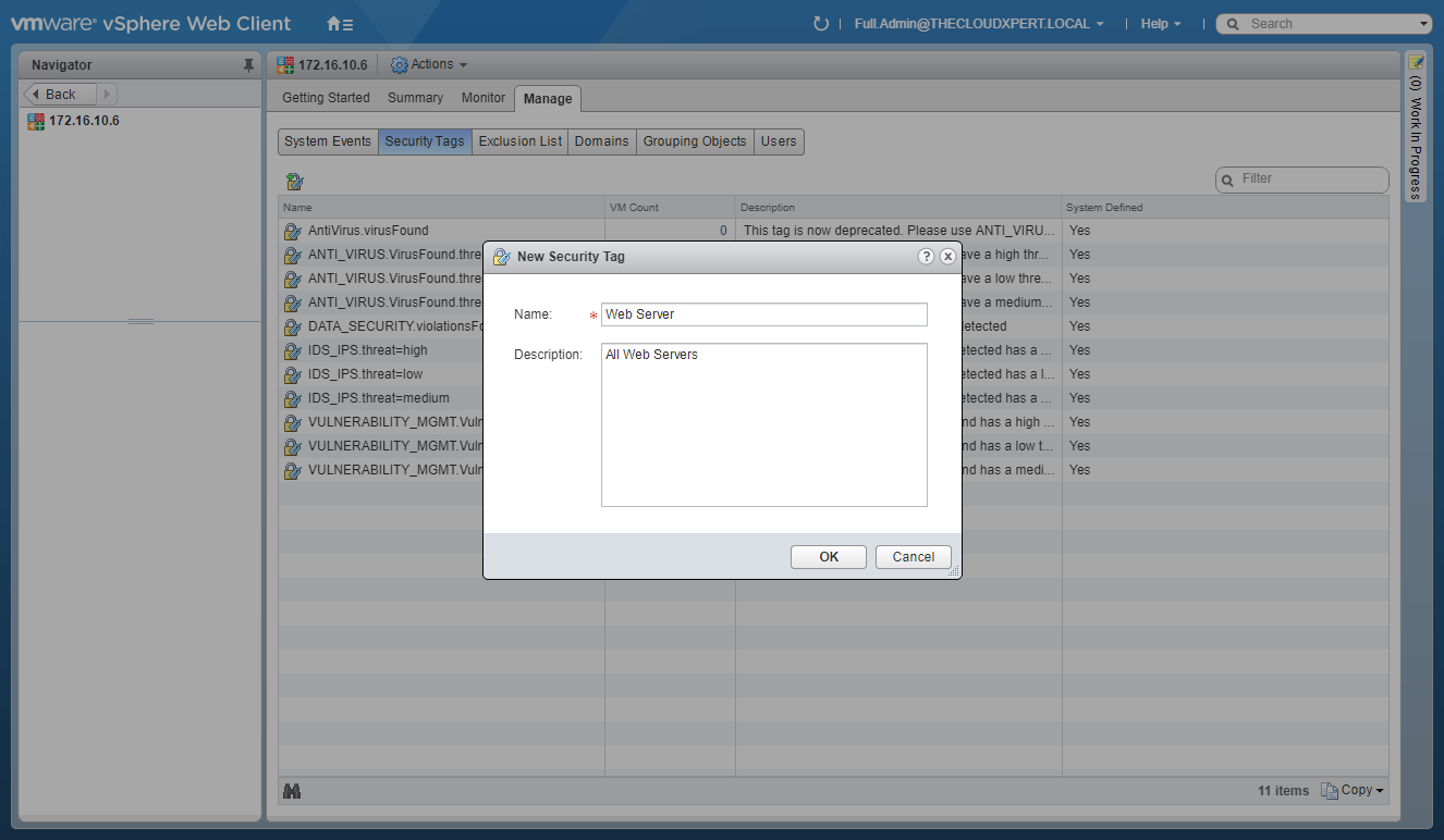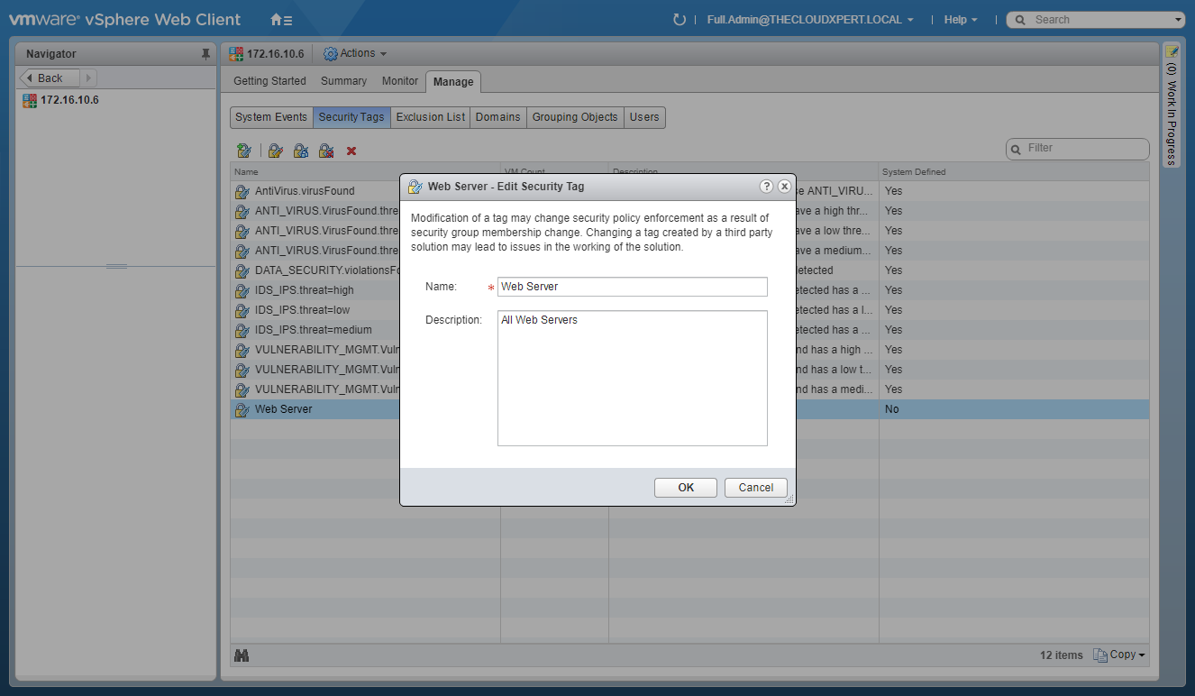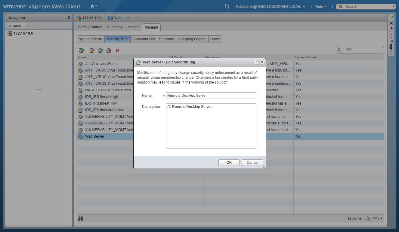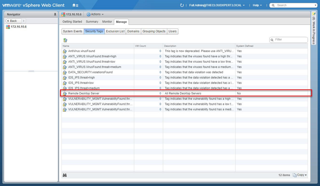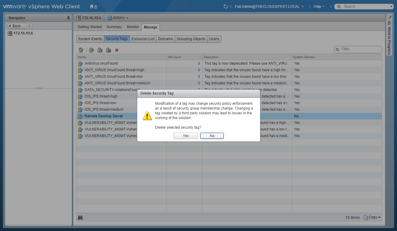 And there we have it, the basics around how to view/create/delete/assign/remove VMware NSX Security Tags!