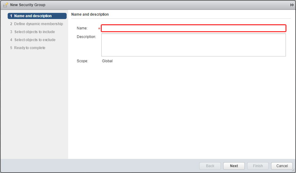 - Enter a Name for the new Security Group and click Next.