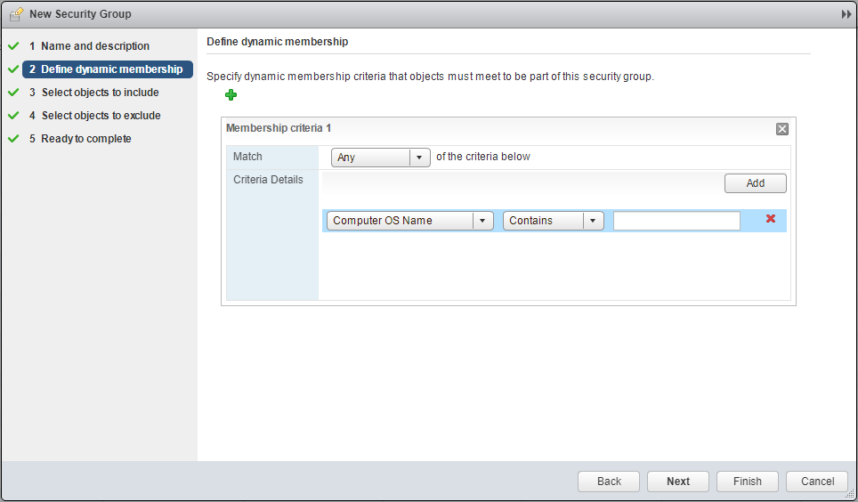 - Specify the membership requirements for the dynamic membership and click Next.