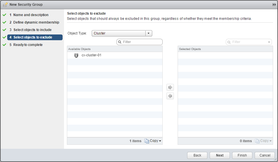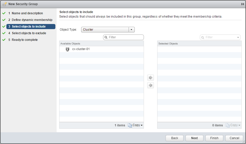 - Select the Object Type (dropdown), move the objects to the Select Objects list and click Next.