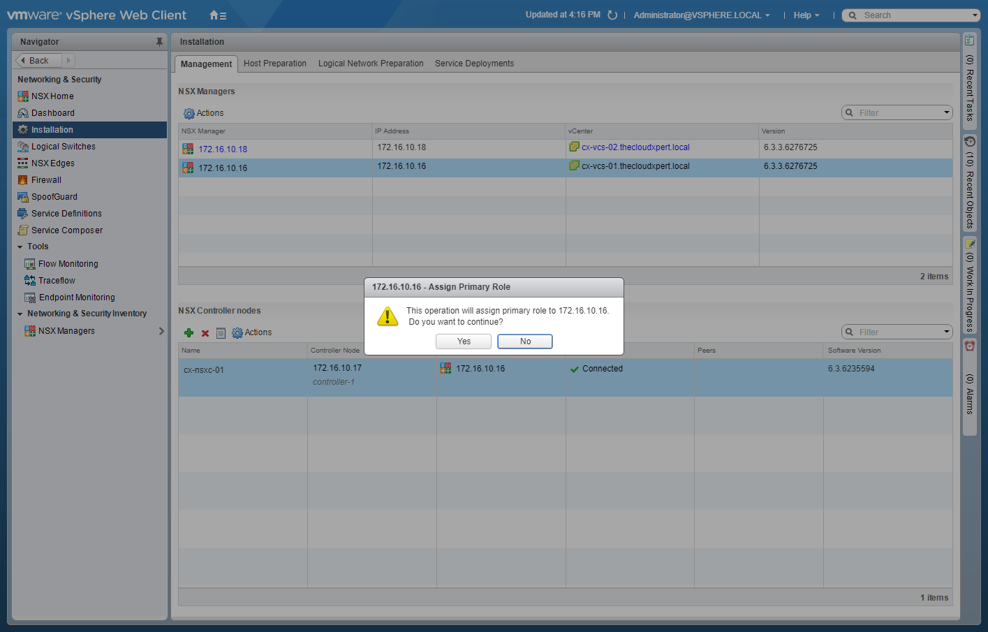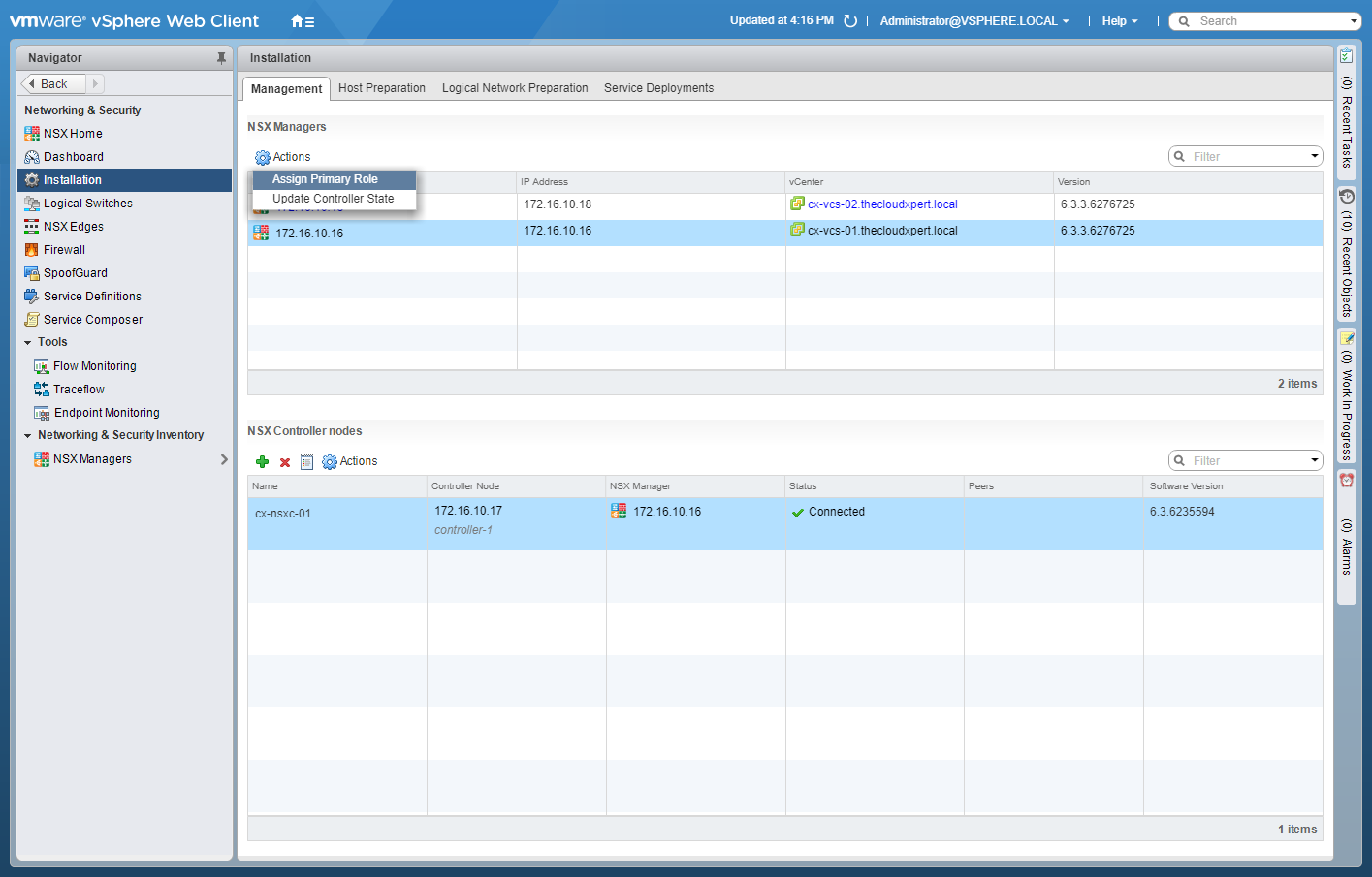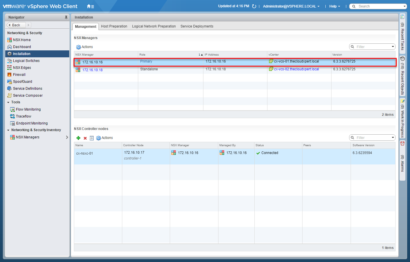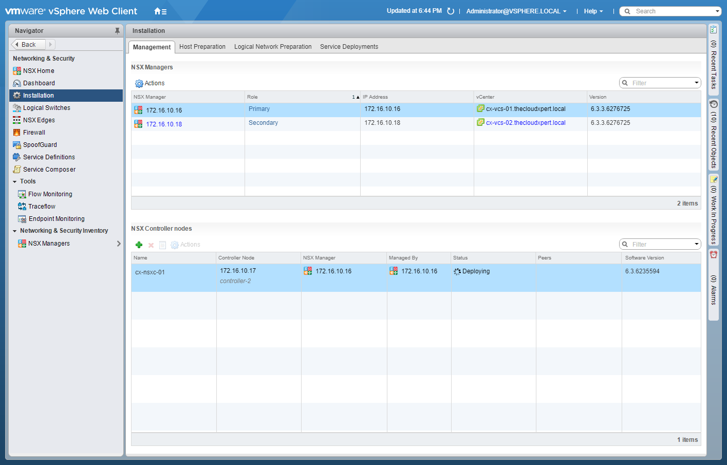I have covered the deployment of VMware NSX Controllers in a previous post and there is nothing different in the steps.