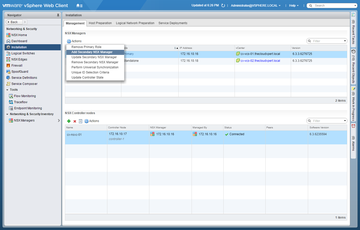 VCAP6-NV Deploy - Objective 6.1 - Configure Cross vCenter VMware NSX infrastructure components