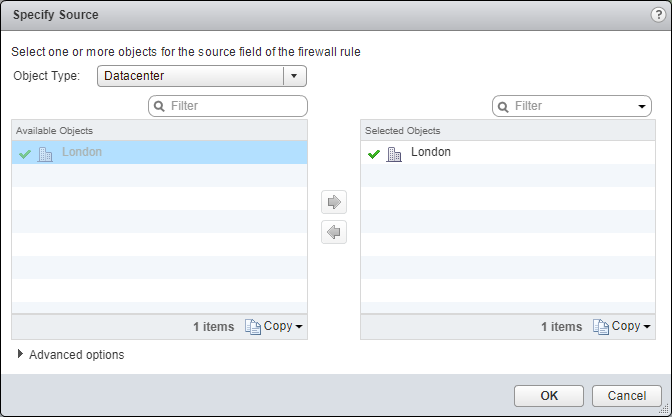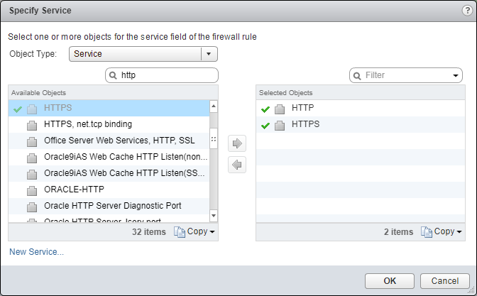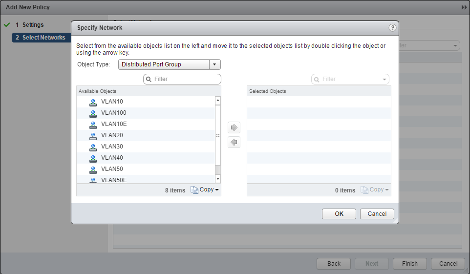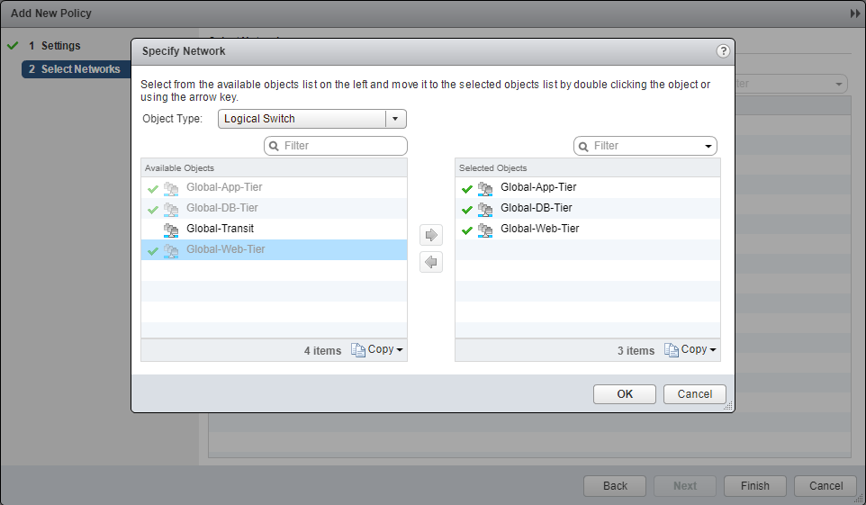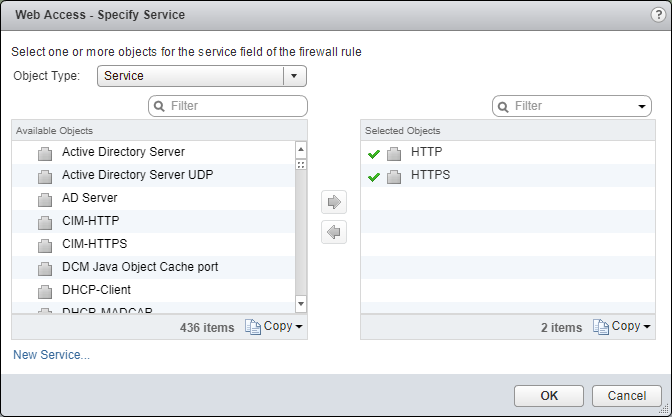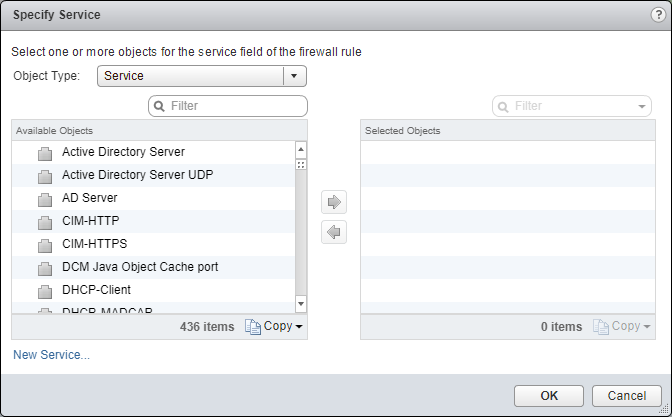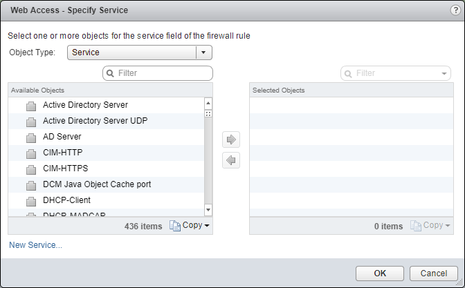 - Select an object from the Object Type dropdown, highlight an item from the Available Objects list and click the arrow to move the item to the Selected Objects list.