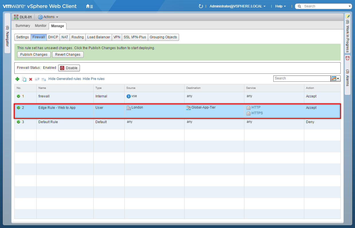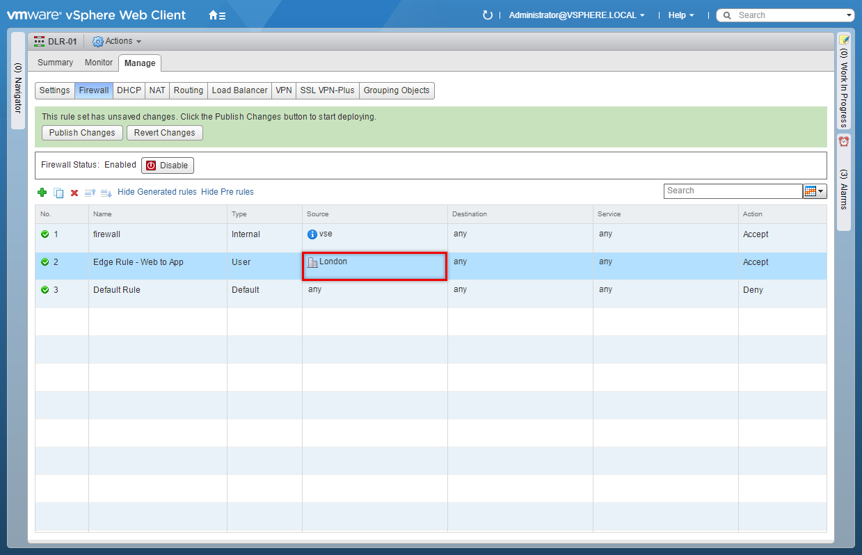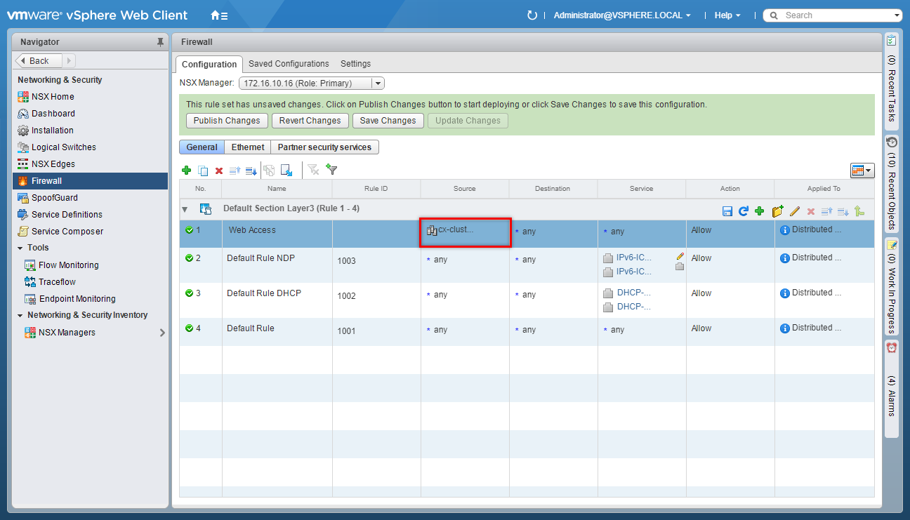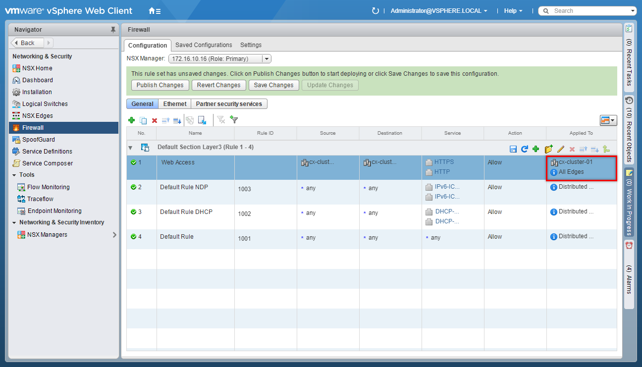 Whilst creating an Edge Firewall rule is essentially the same process as a distributed firewall rule, there are some UI differences. Checkout the following steps.