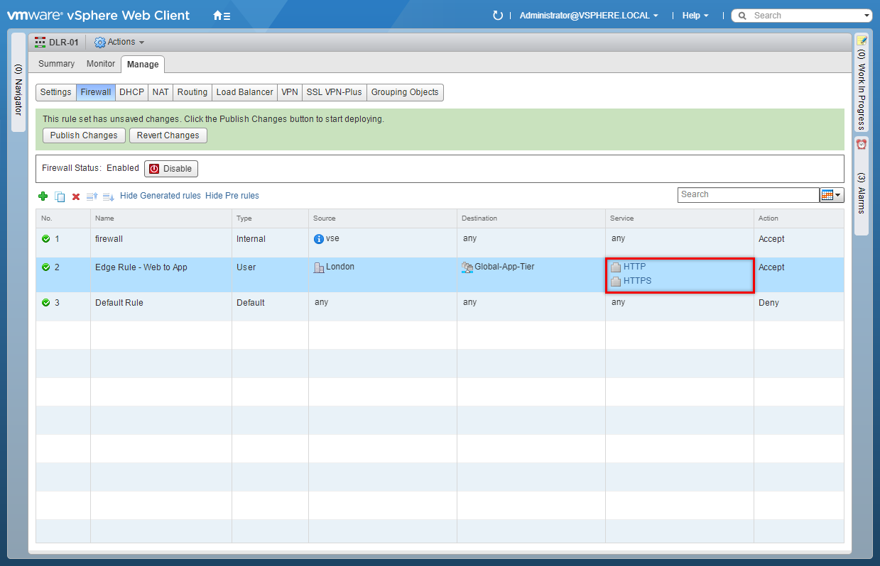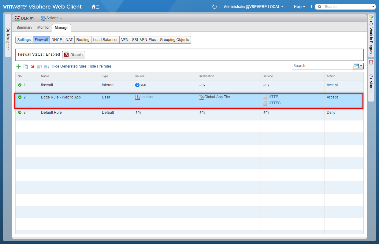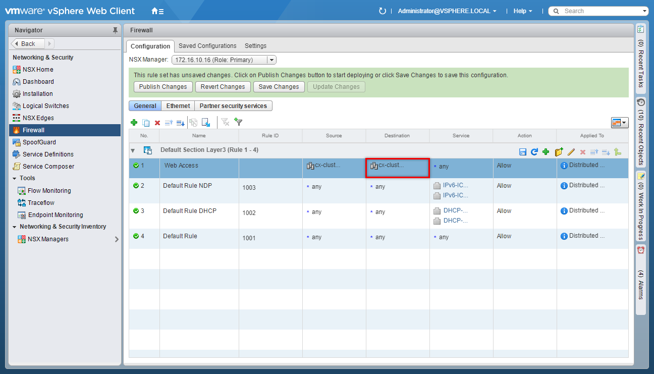 Whilst creating an Edge Firewall rule is essentially the same process as a distributed firewall rule, there are some UI differences. Checkout the following steps.