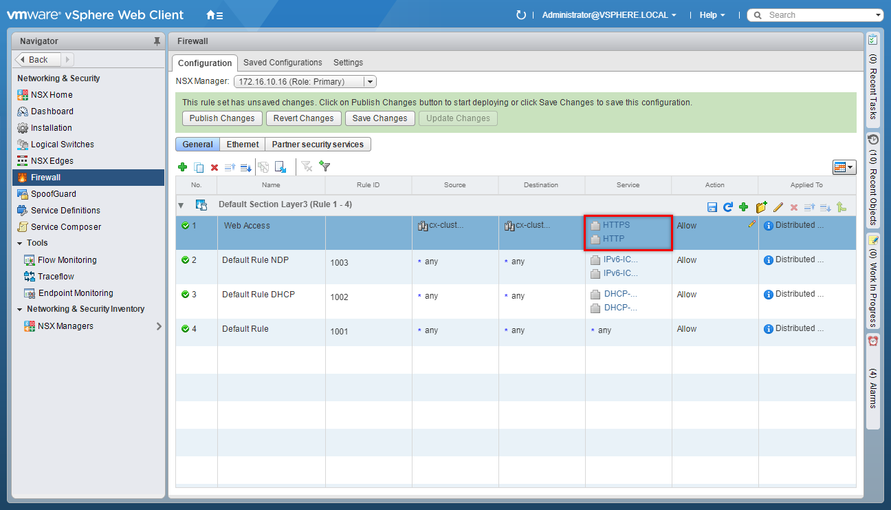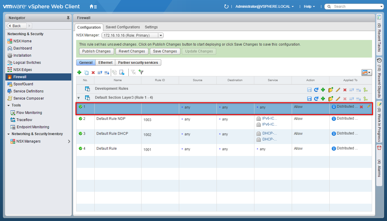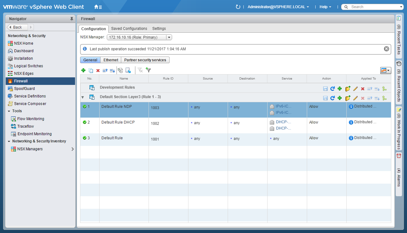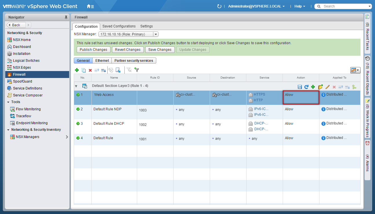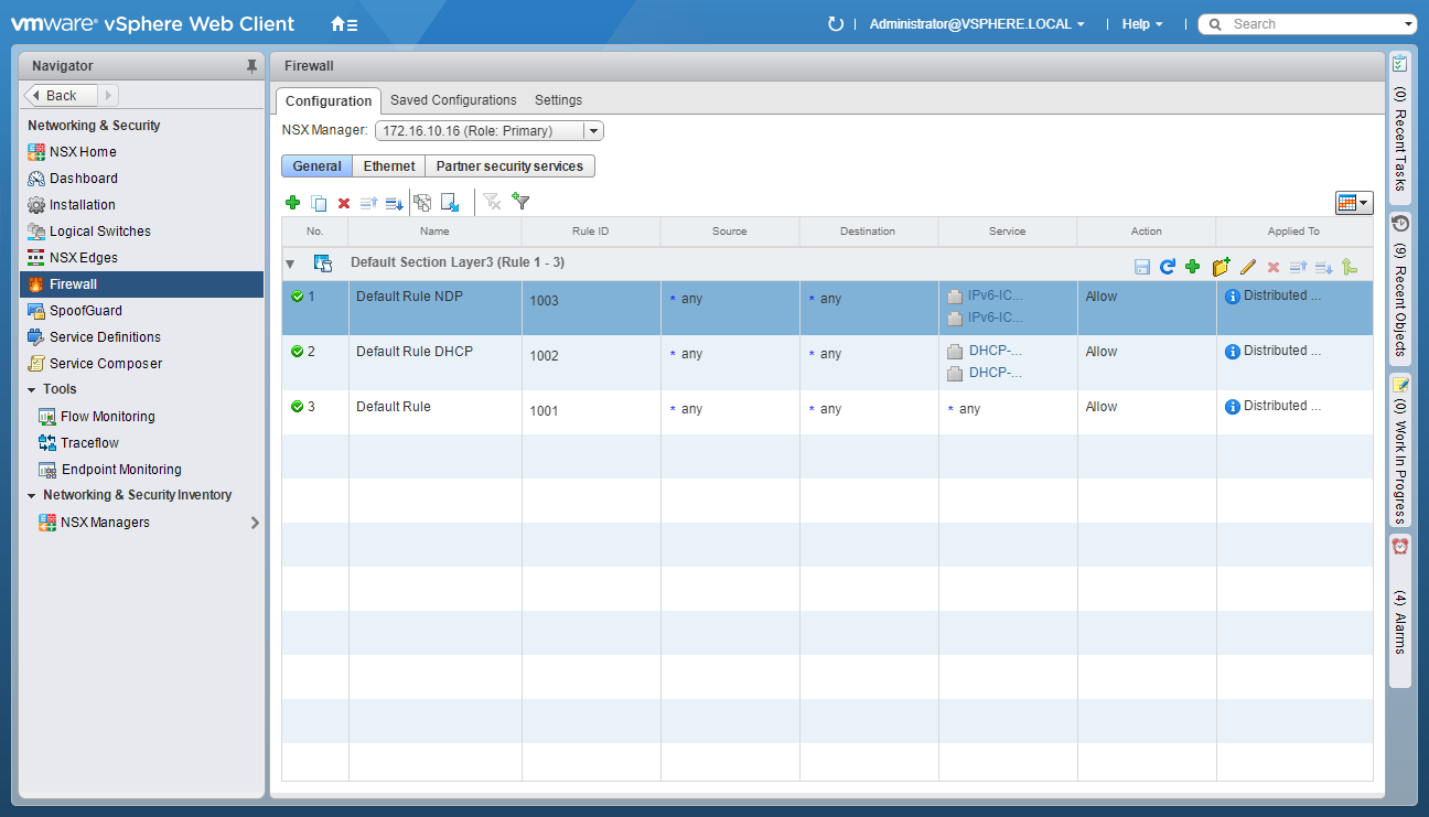 - Configure Edge and Distributed Firewall rules according to a deployment plan: