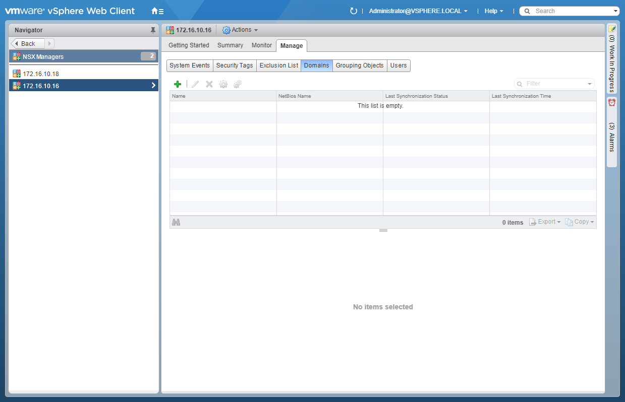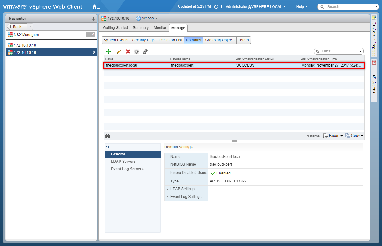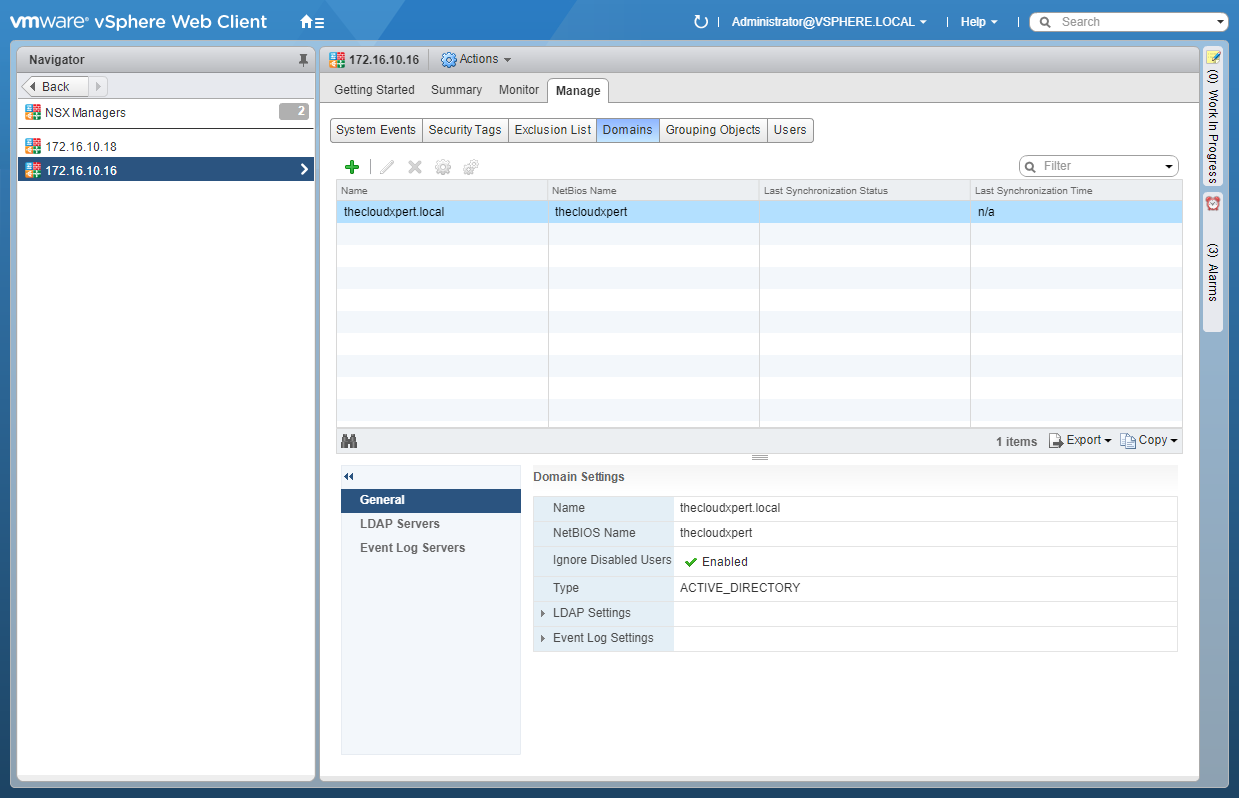 As we have covered the creation of NSX Security Groups and the creation of Firewall Rules using NSX Security Groups. This section will only cover the configuration required to synchronize NSX Manager with AD.
