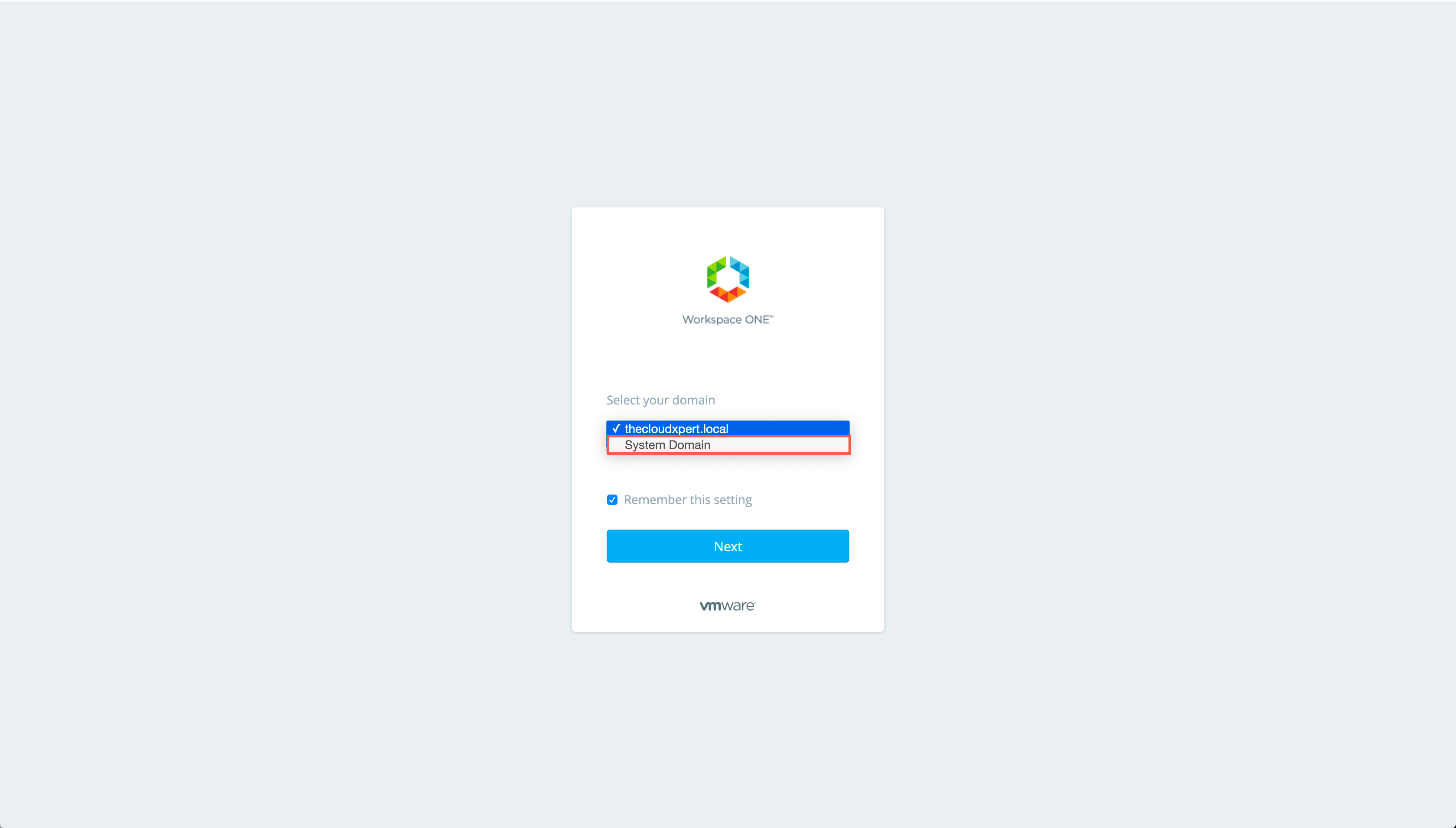 - At the login screen, select the System Domain value from the Select your domain dropdown.