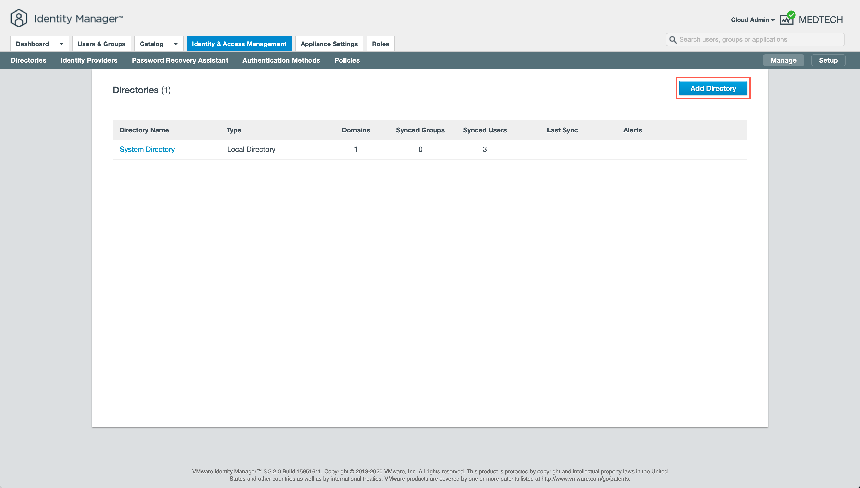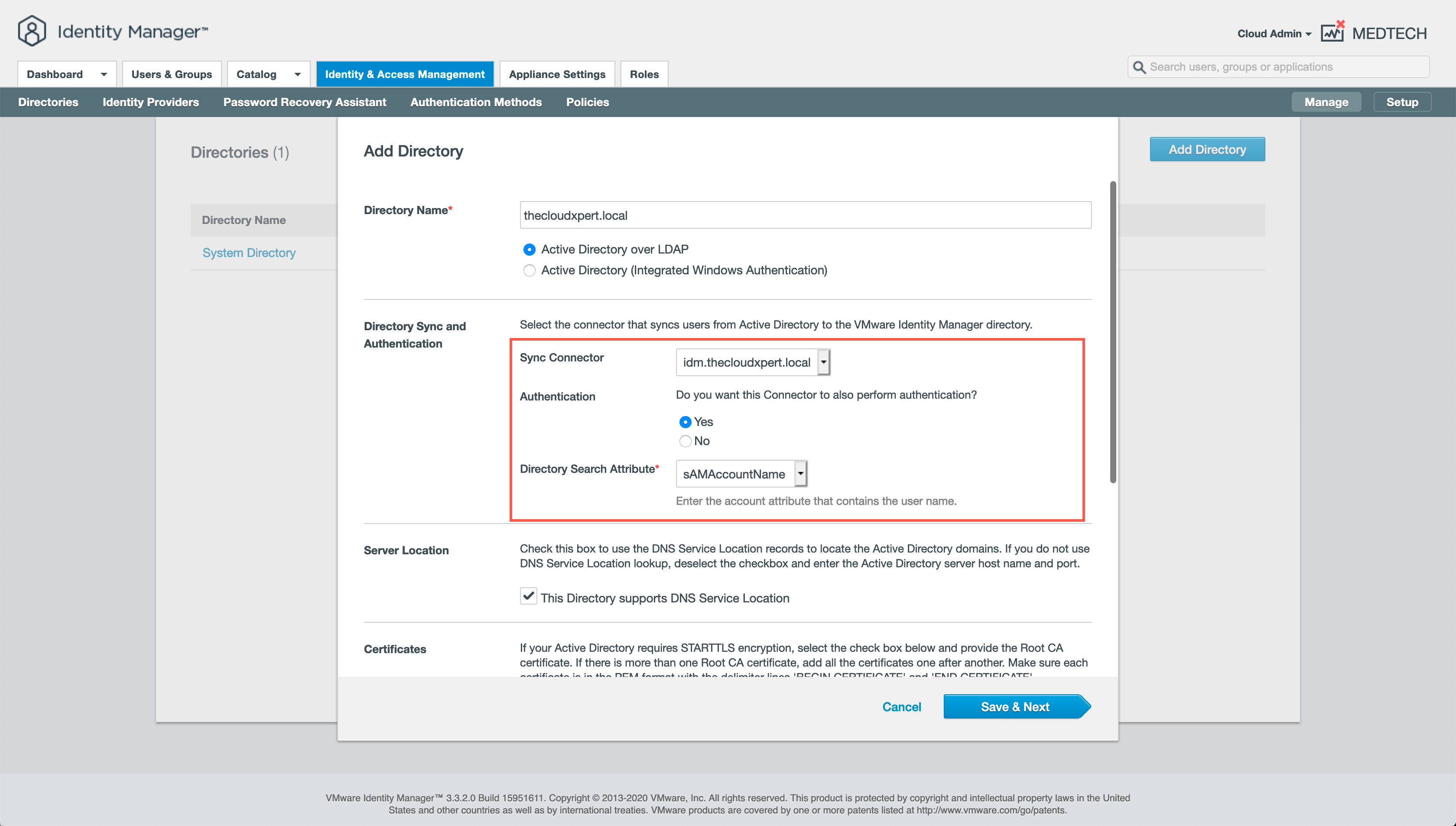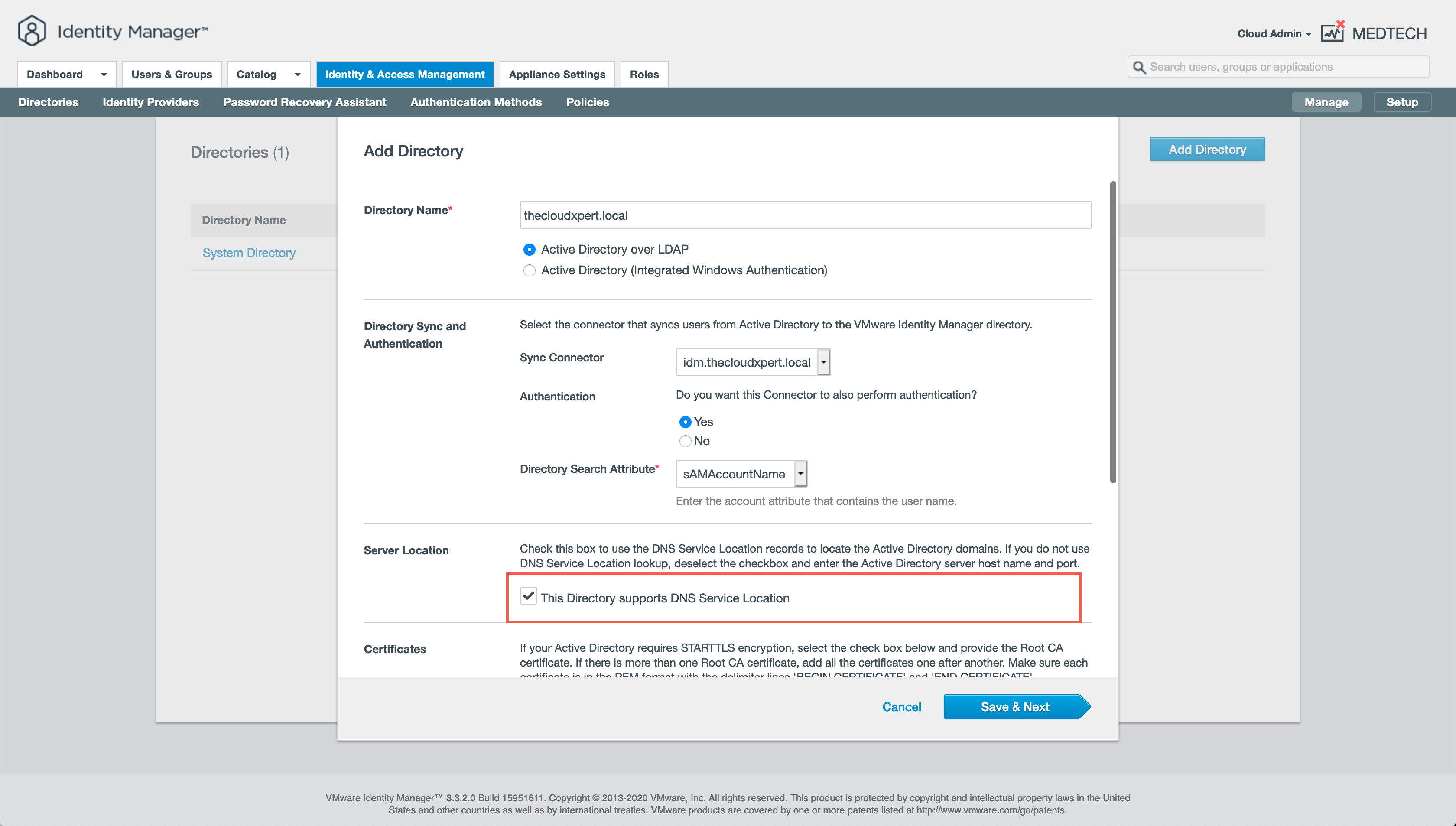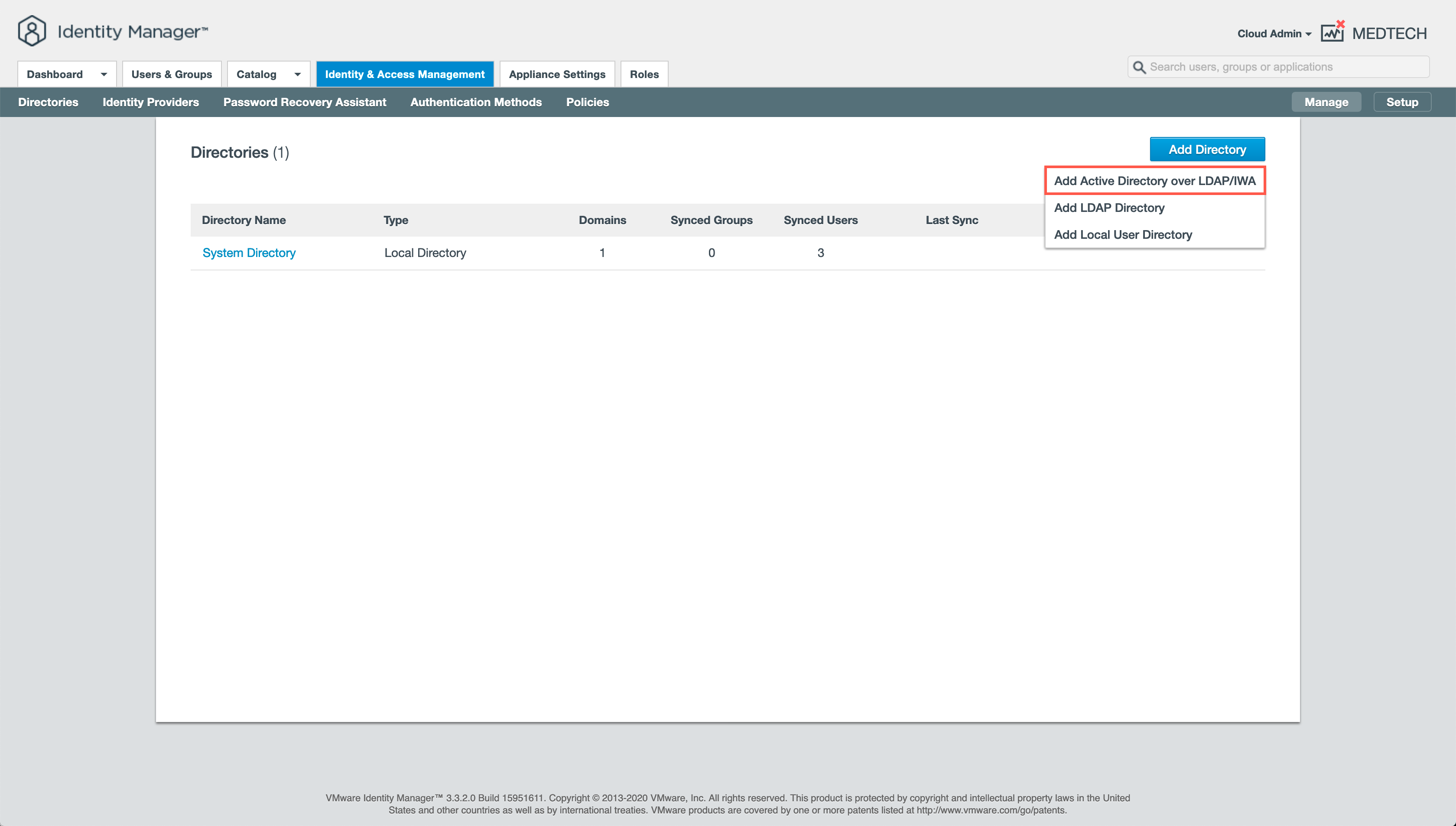 We’re going to be adding new User Directories to the MedTech Organization we created previously. This objective can be completed using vRSLCM. Obviously using vRSLCM potentially means that your provider tenant needs to have a number of customer Active Directories (based on your requirements) configured.