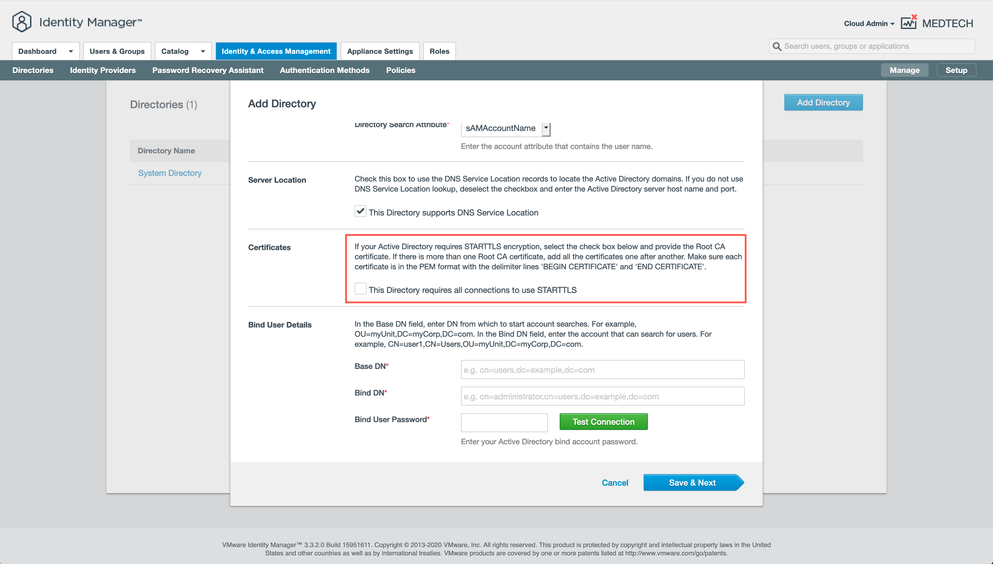- At the Add Directory screen, under Certificates, leave the default settings.
