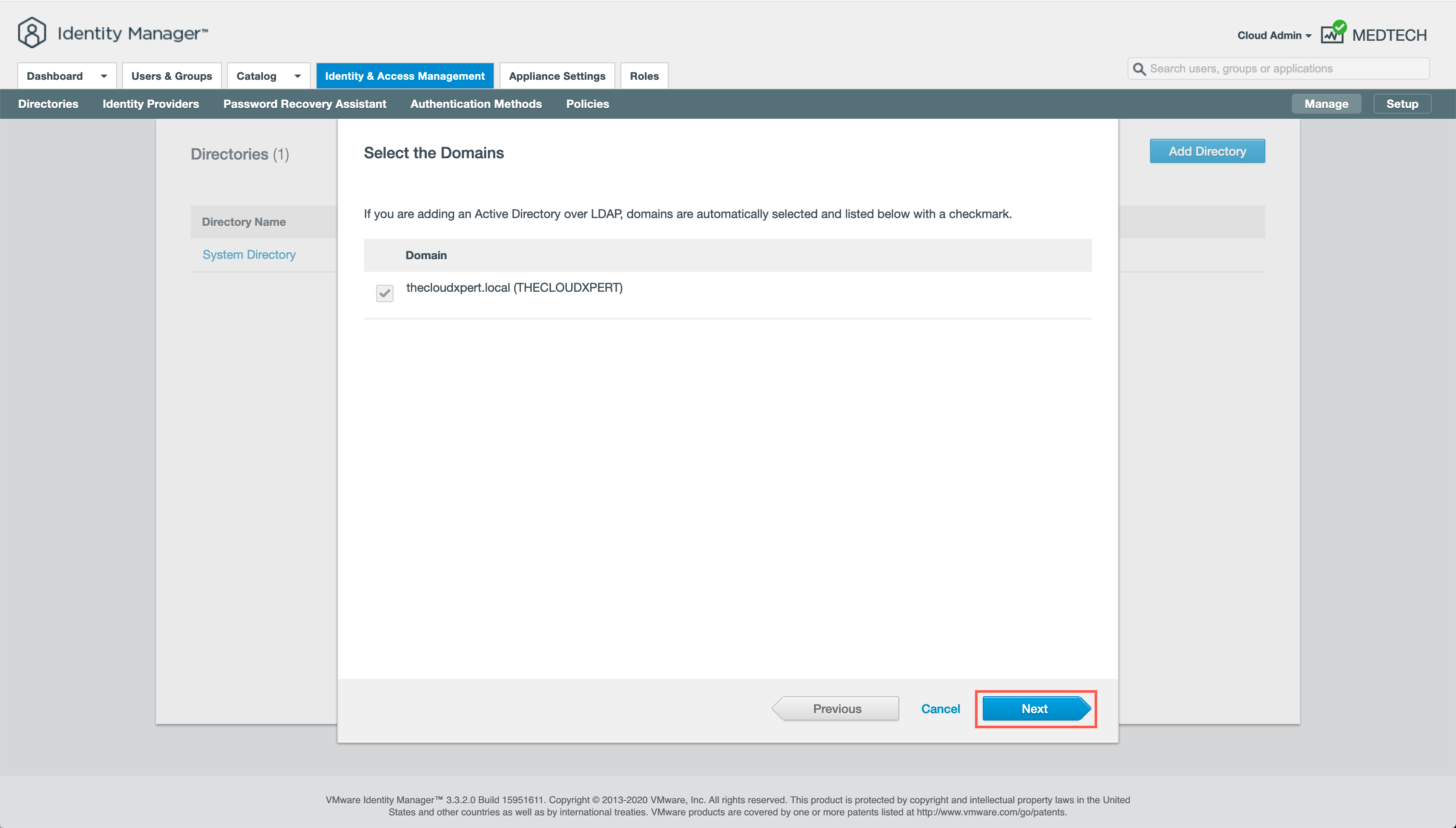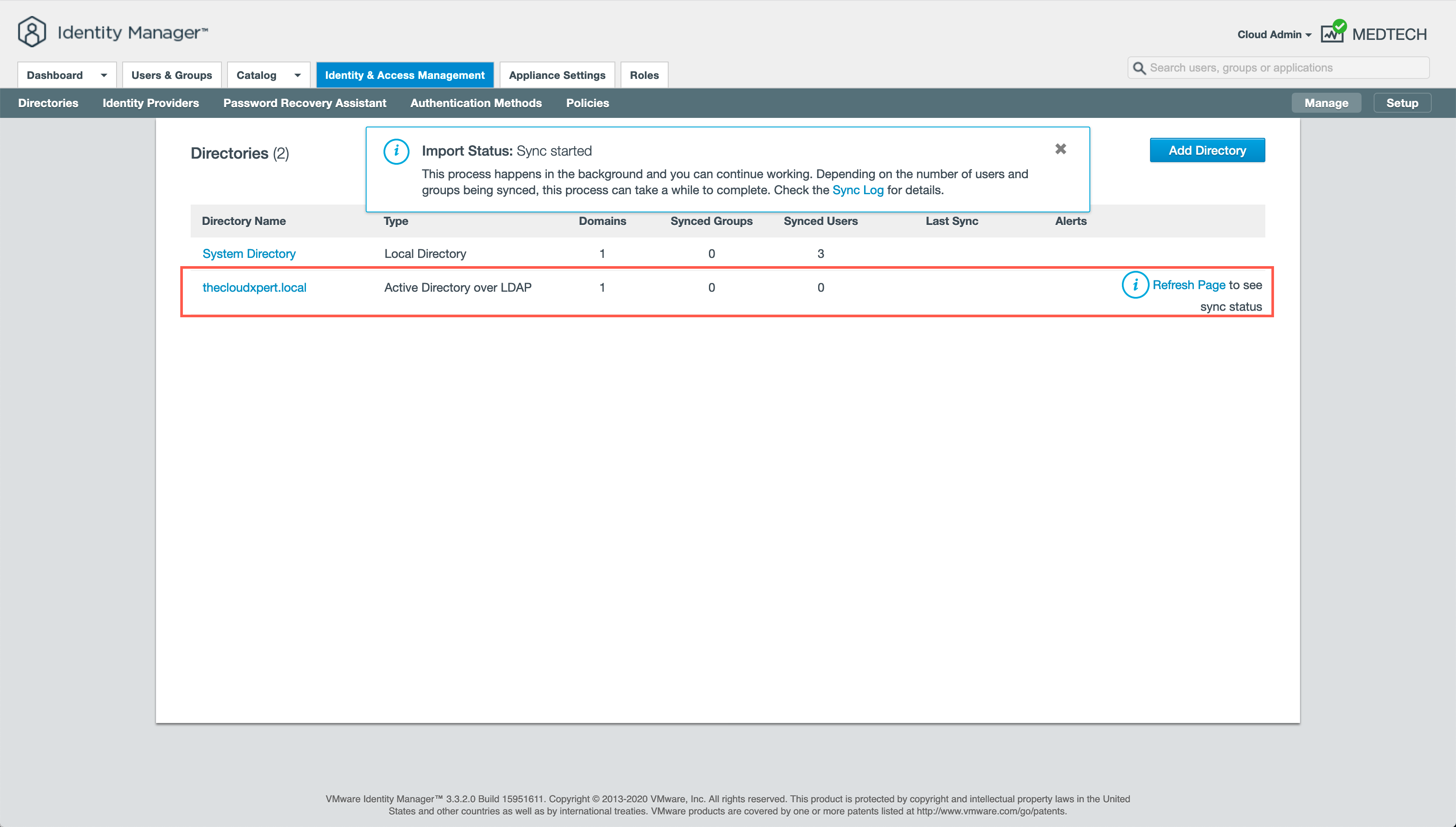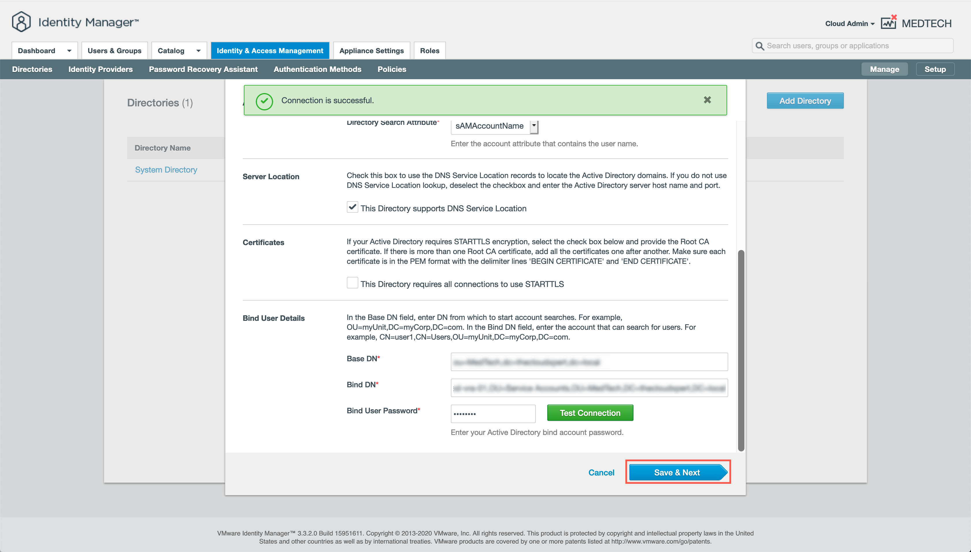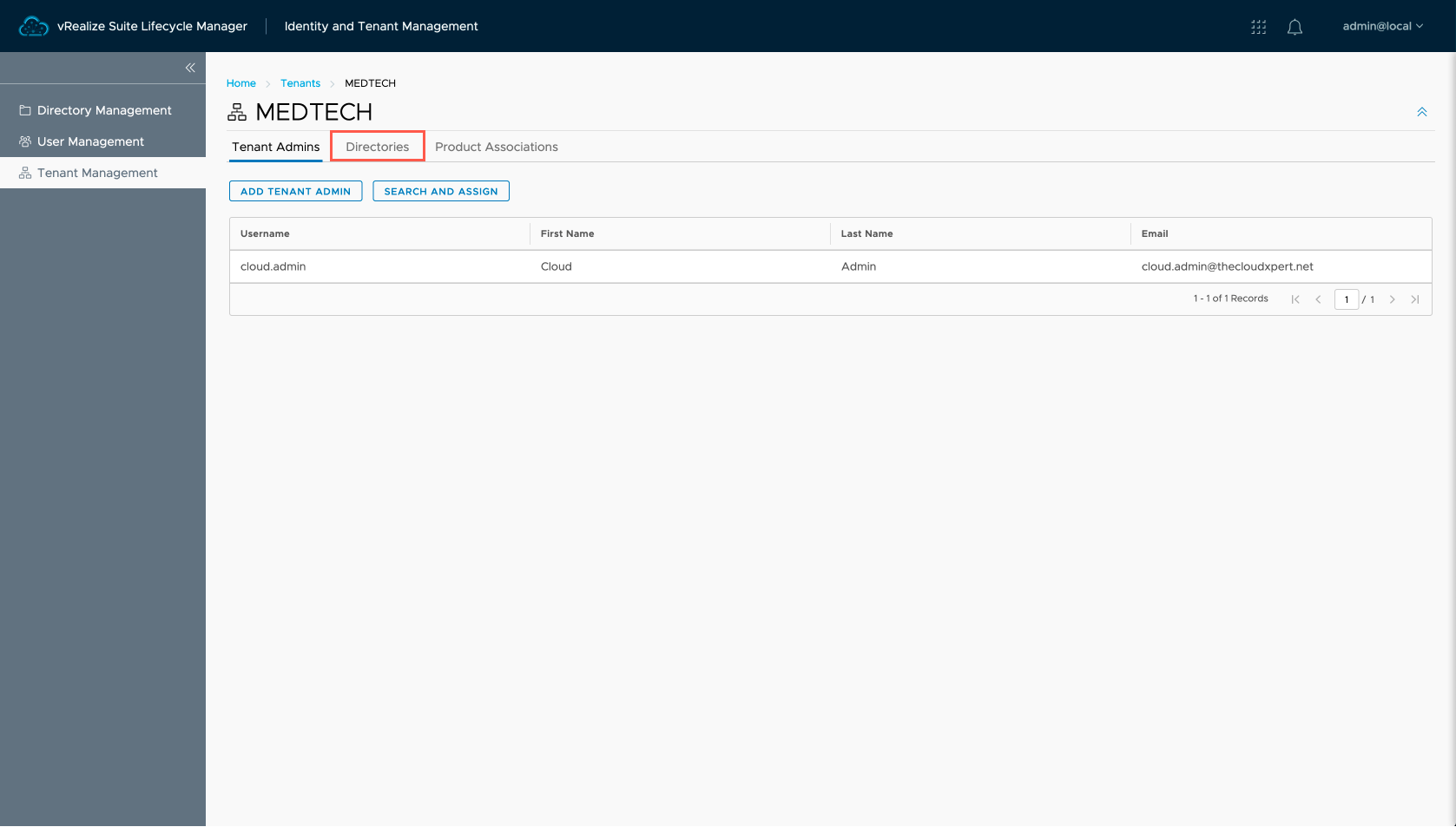Again, we can switch back the vRSLCM and see the new User Directory in the MedTech Tenant.