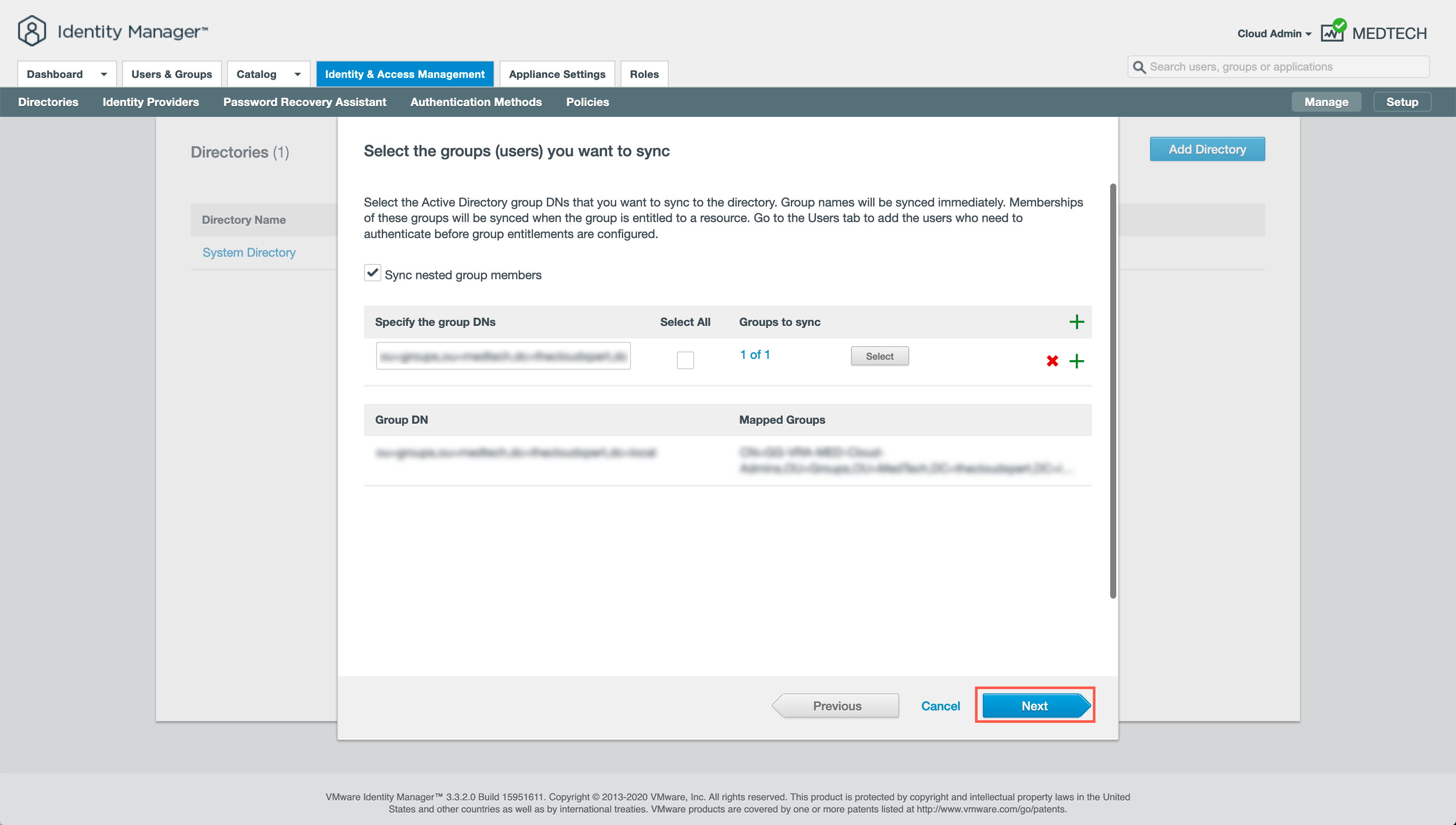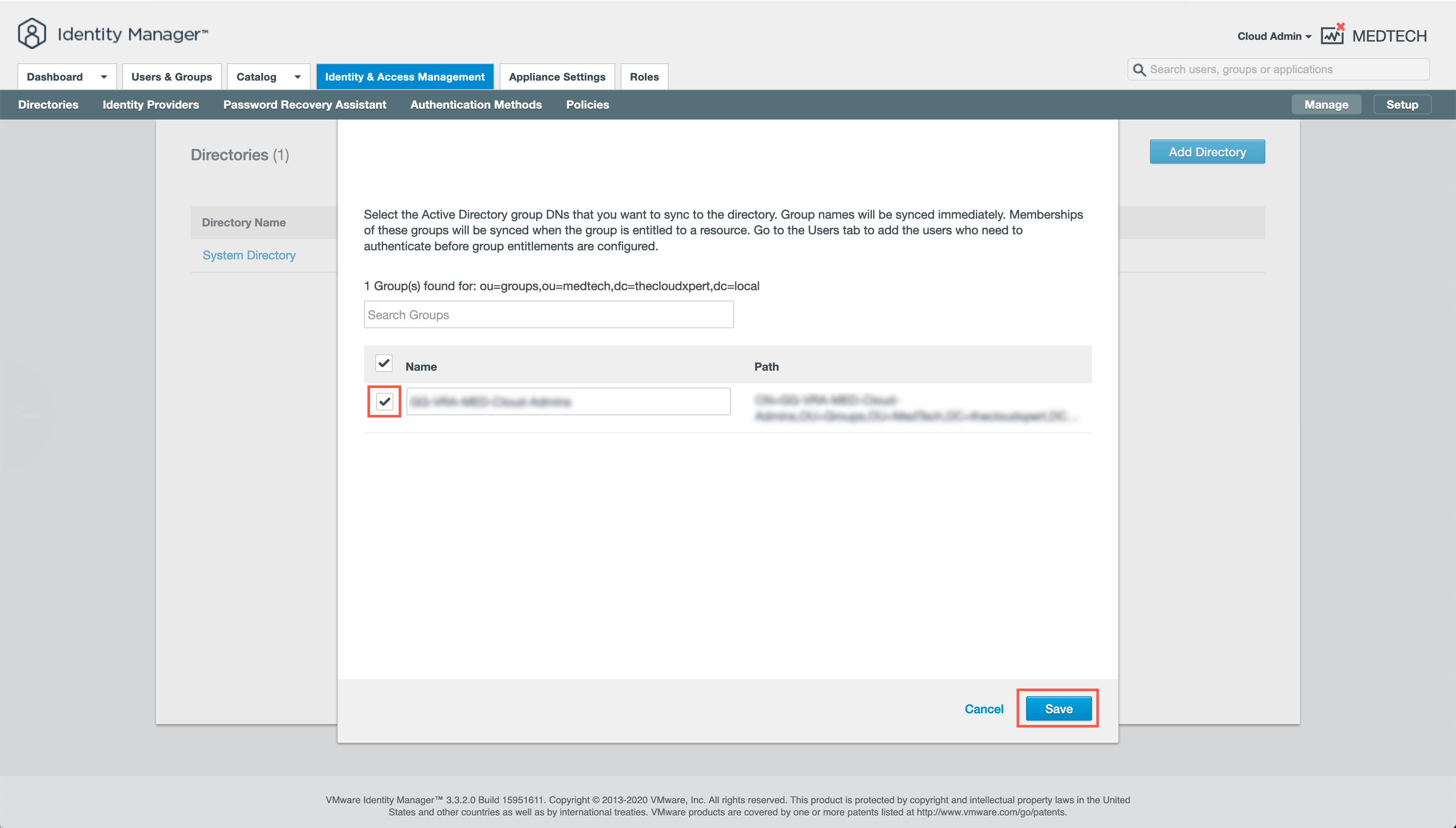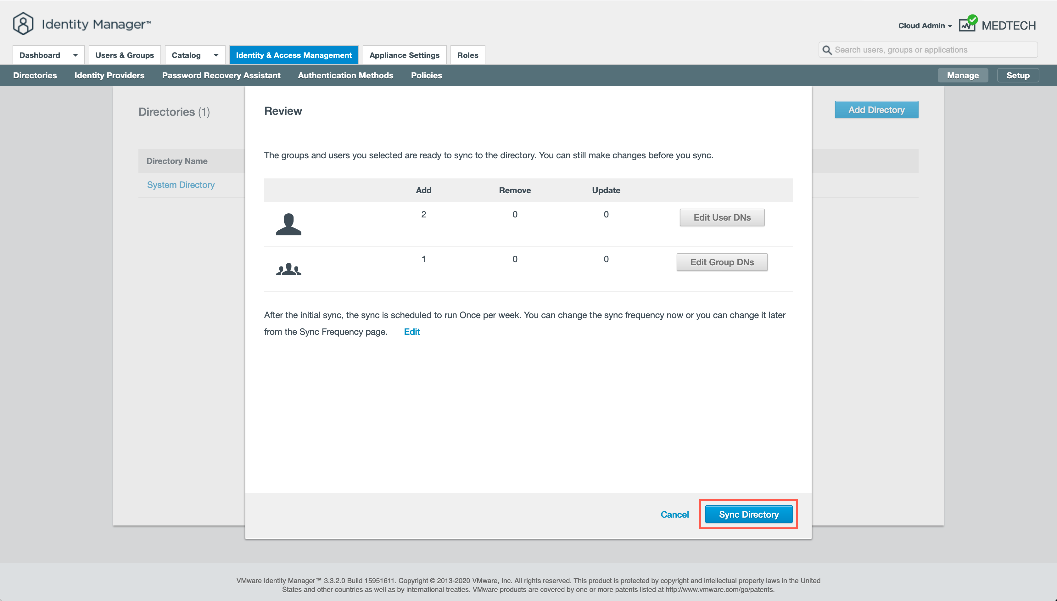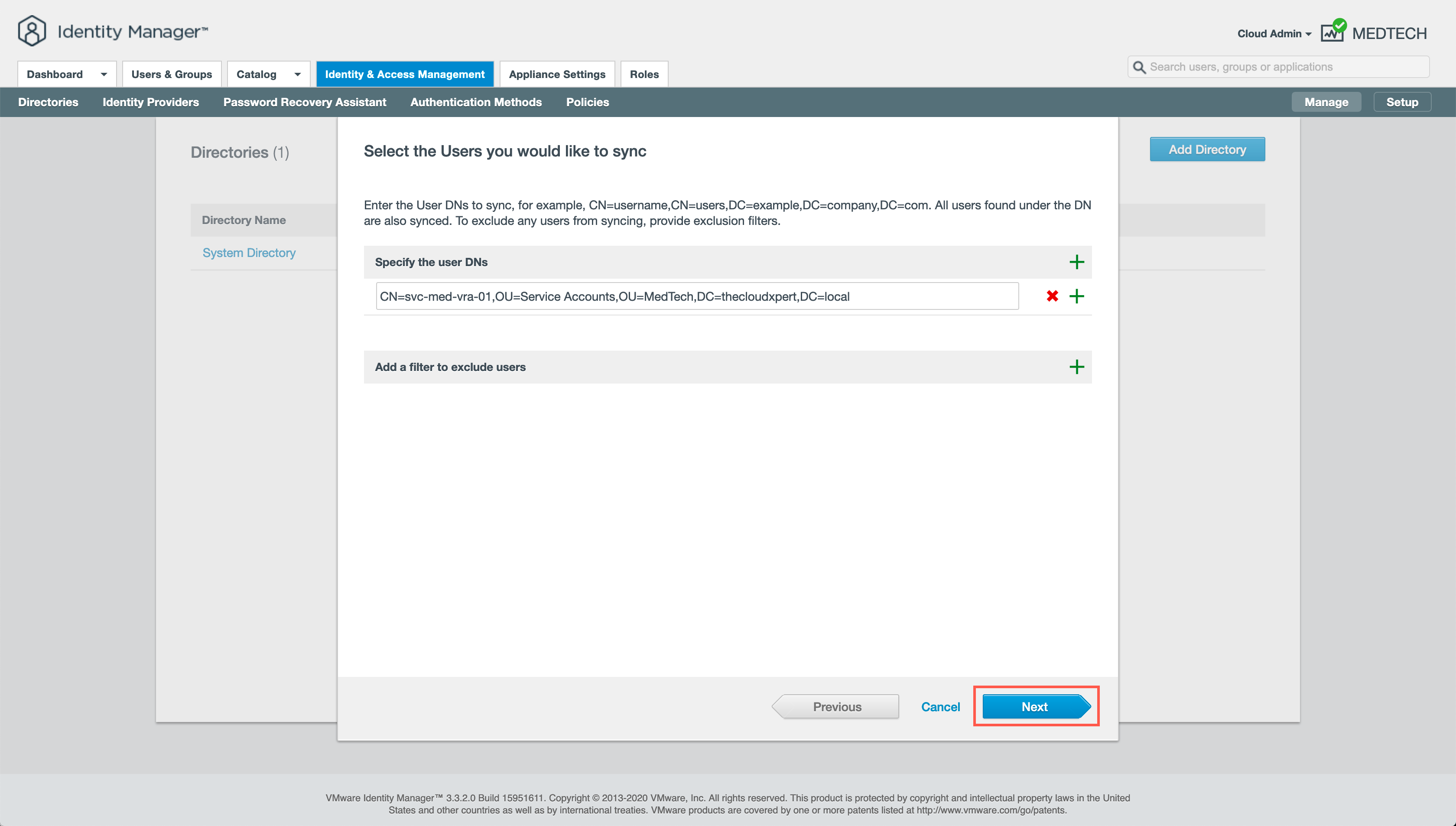Again, we can switch back the vRSLCM and see the new User Directory in the MedTech Tenant.