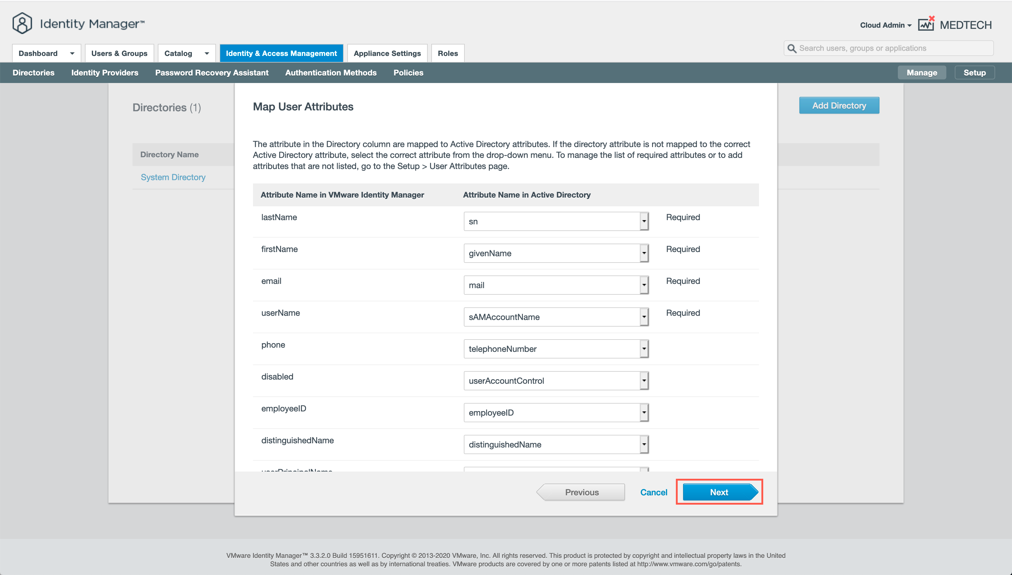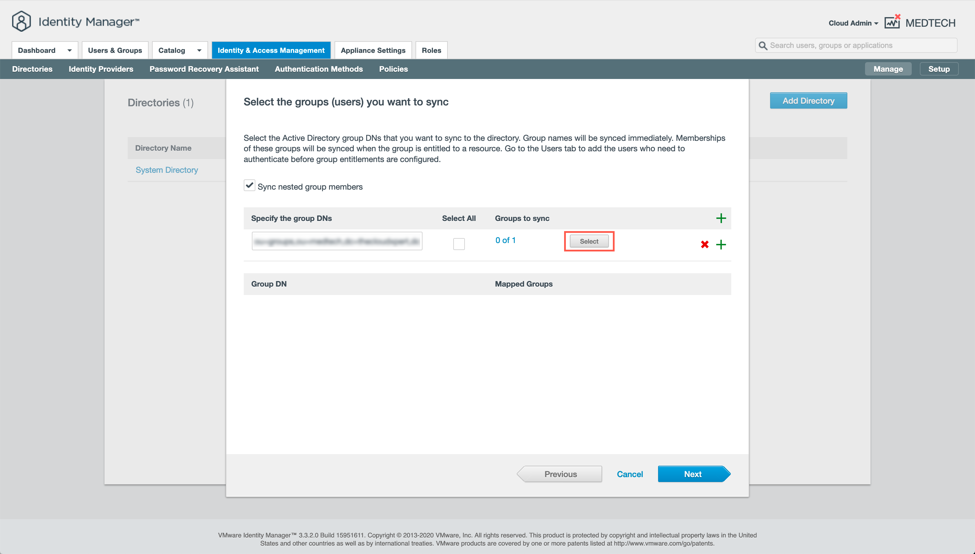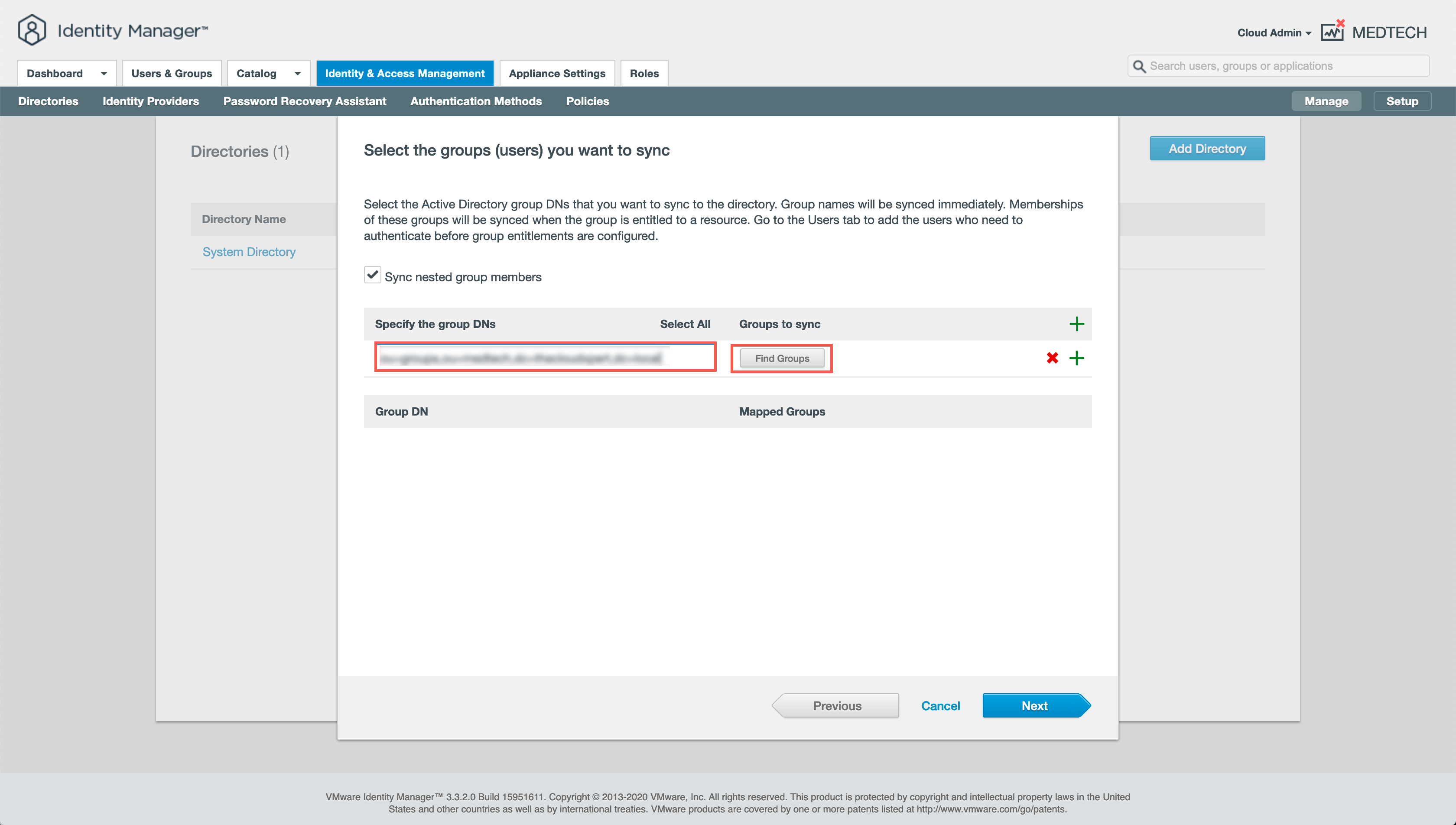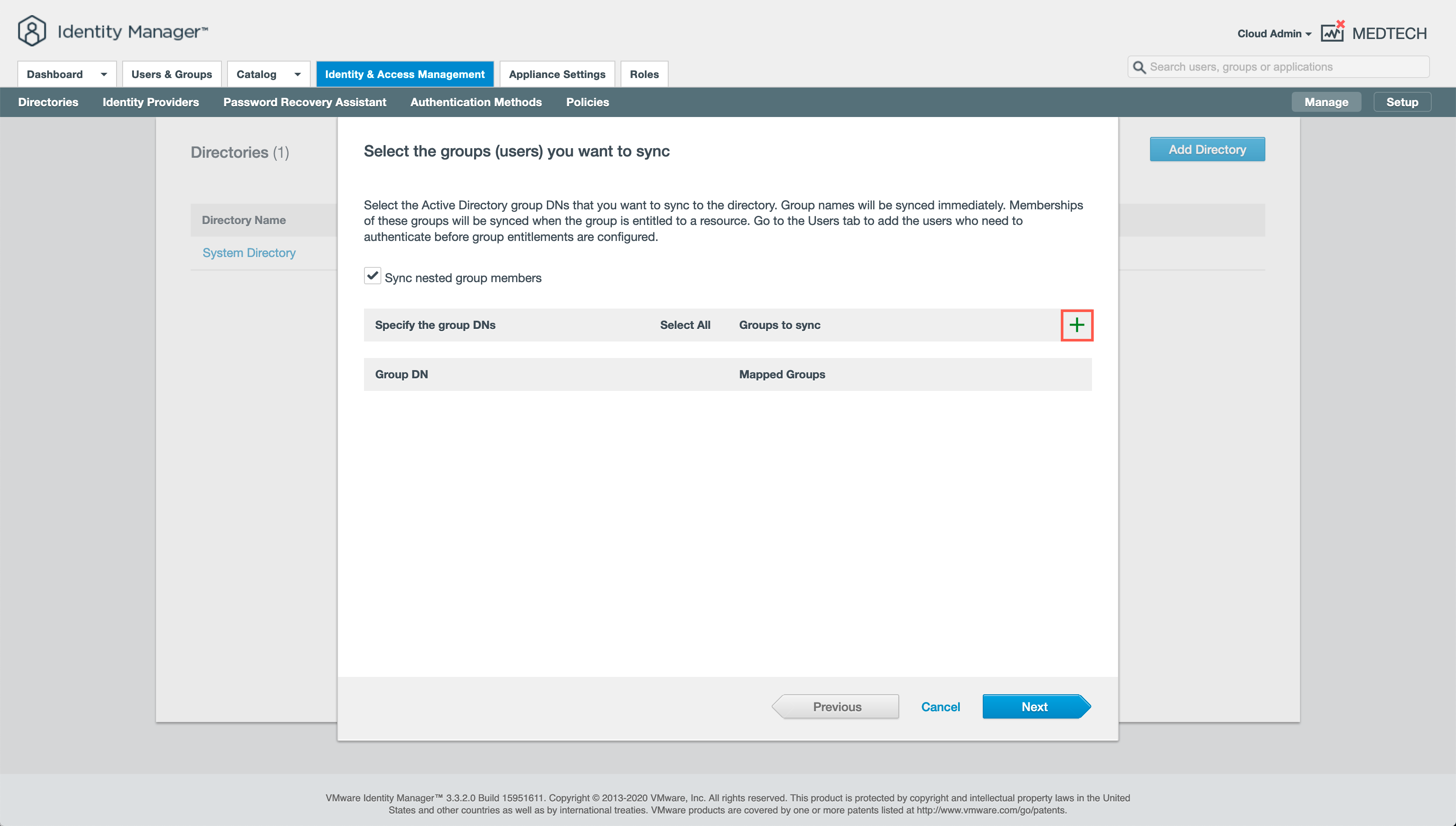 Adding a New User Directory to the Customer Tenant using VMware Identity Manager