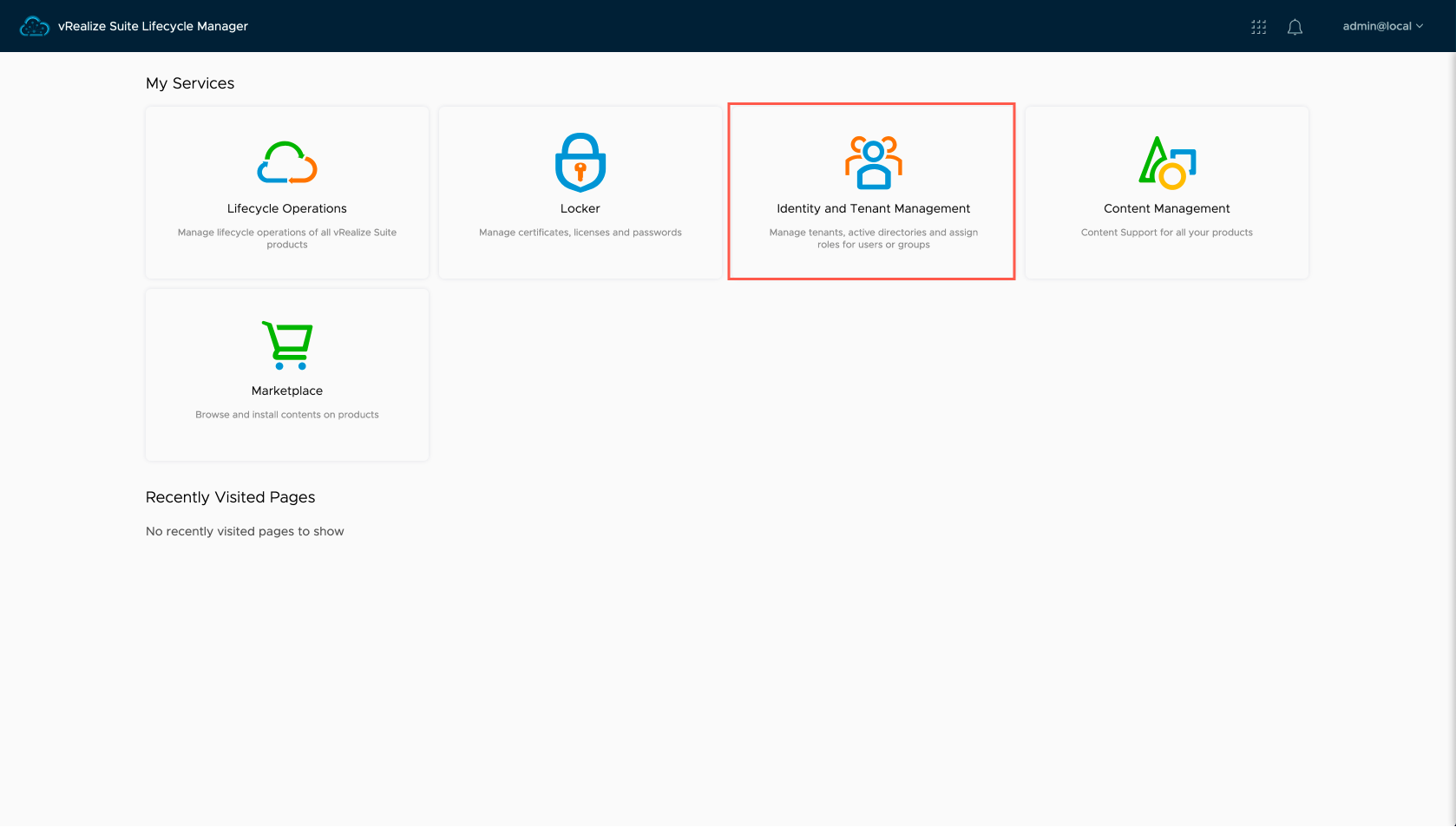 - Navigate to the vIDM Administrator portal for the tenant, https://tenant.idm.fqdn/admin