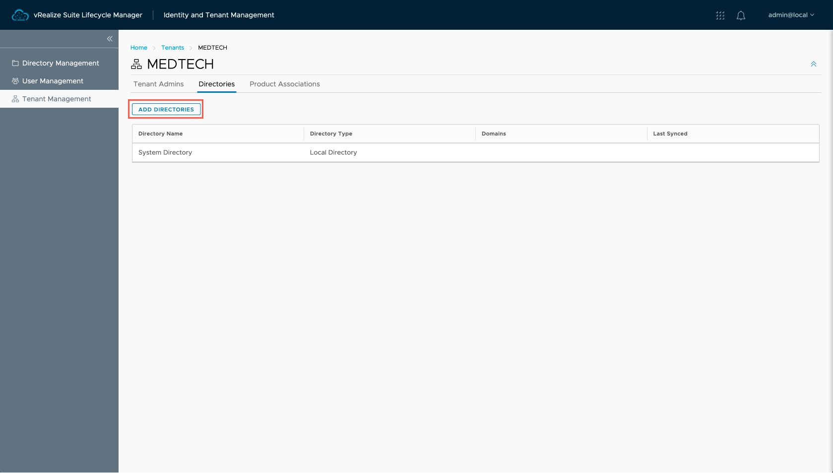 - At the Add Directories to Tenant screen, click ADD DIRECTORIES.