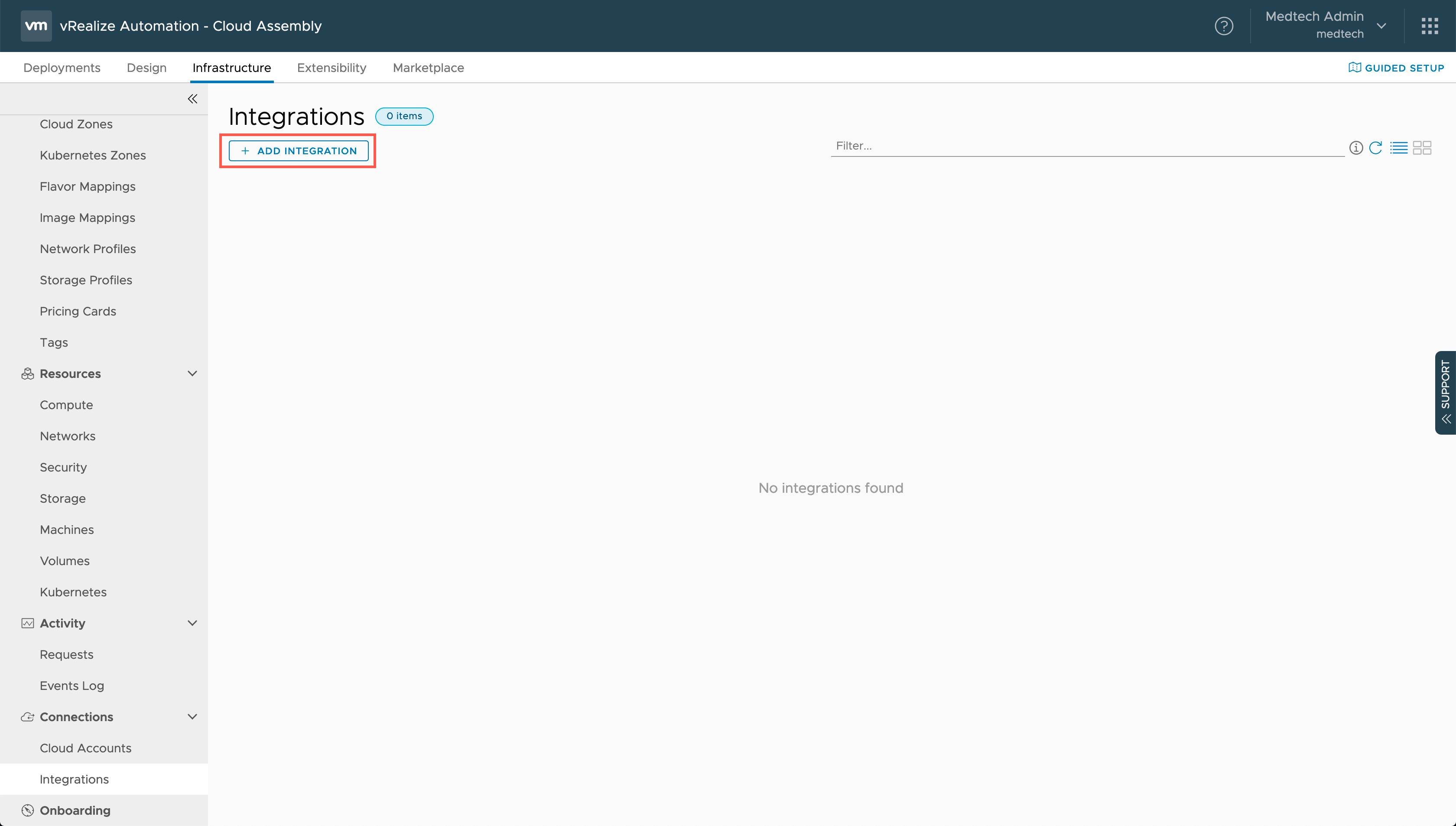 - Click ADD INTEGRATIONS.