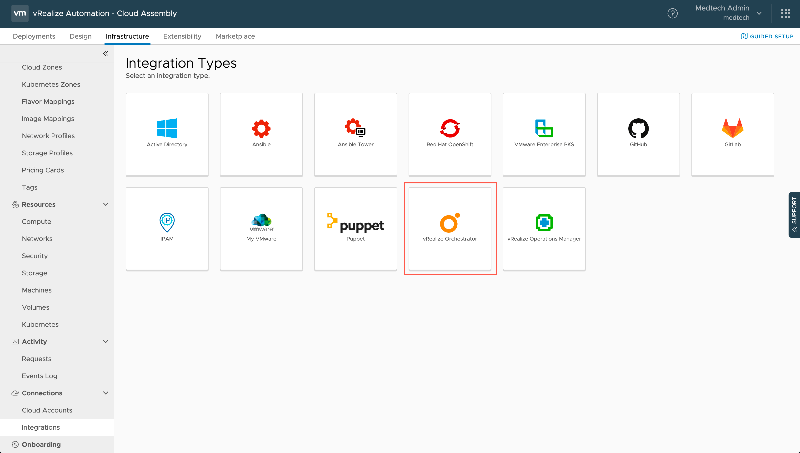 - Click Infrastructure.