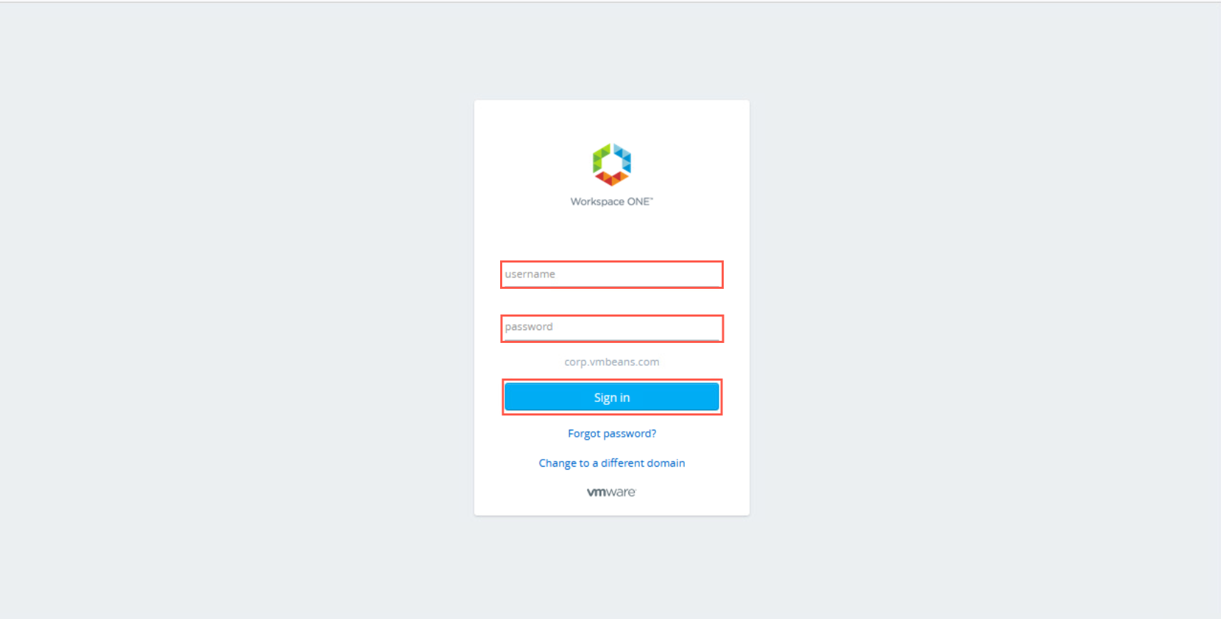 - At the Workspace ONE Access page, type the username and password and click Sign in.