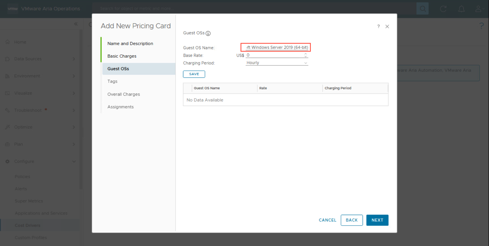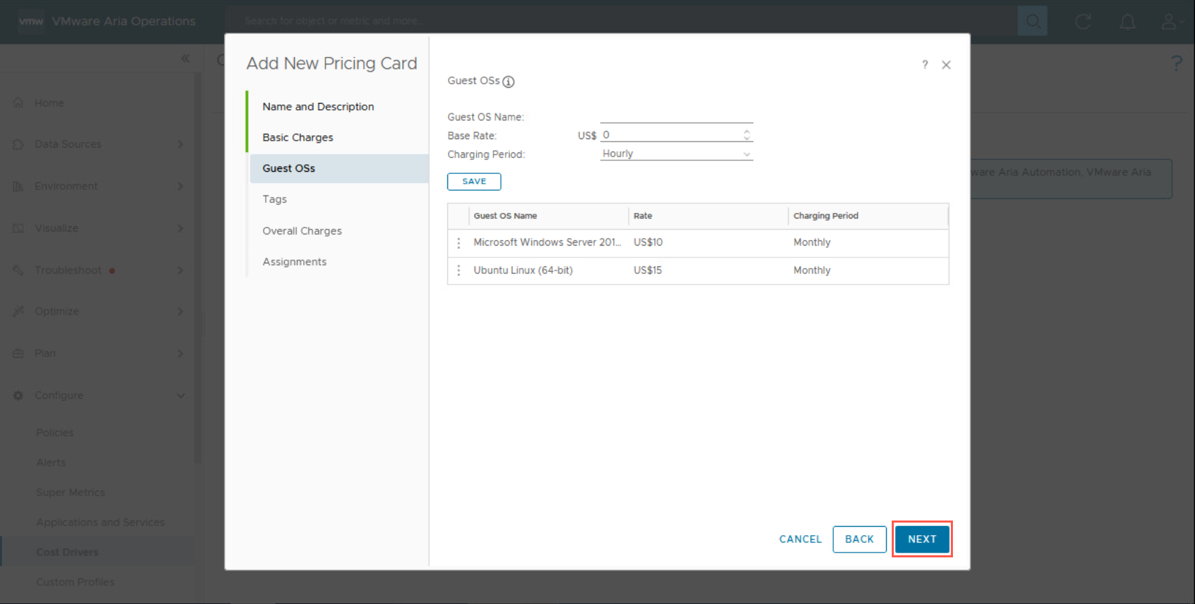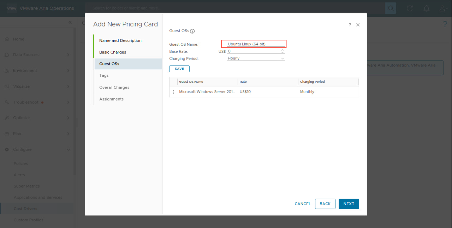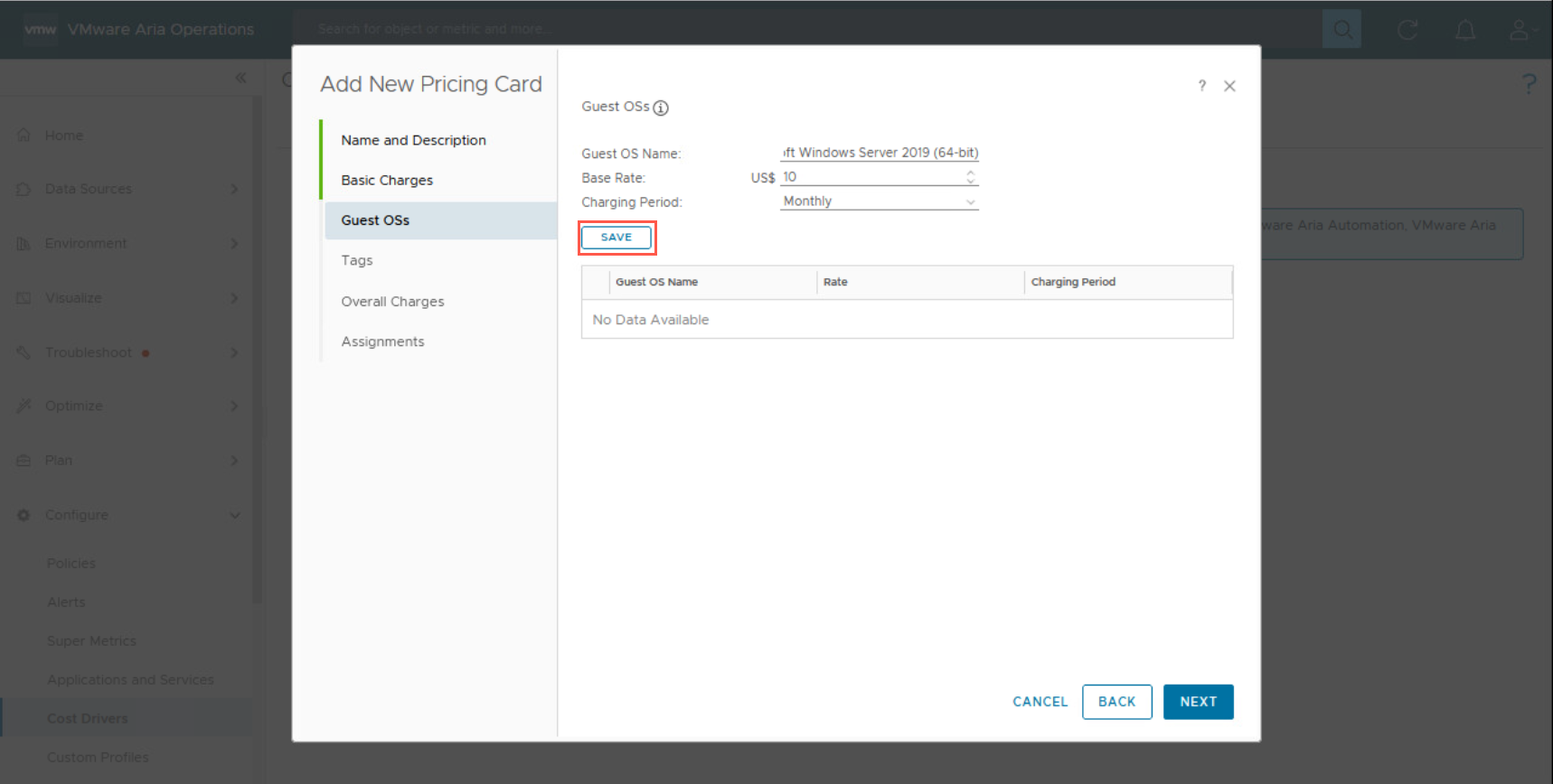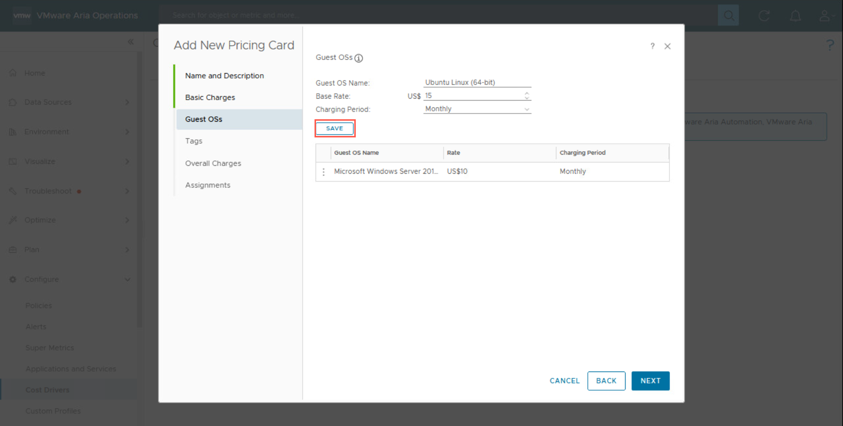 - At the Add New Pricing Card dialog, under Guest OSs, click SAVE.