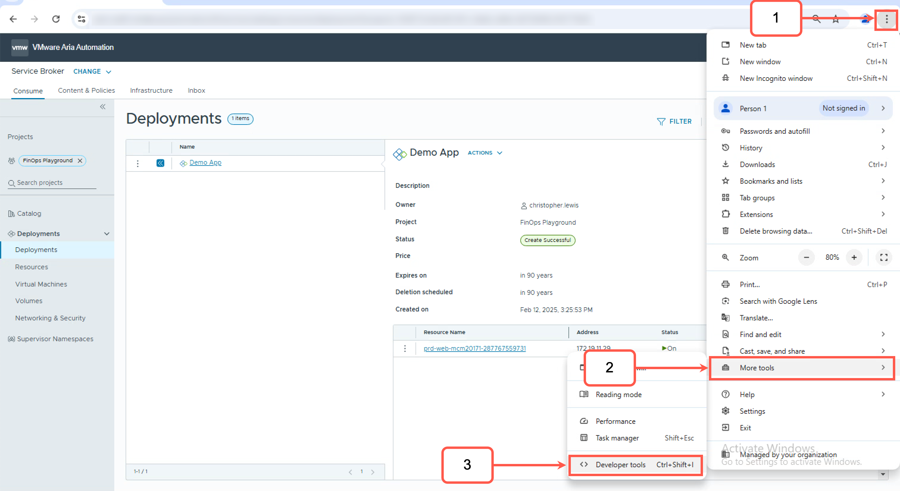 - From within the Chrome Browser, complete the following steps to open the Chrome Developer Tools: